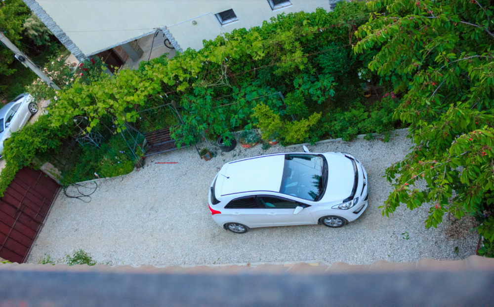 Парковка на территории, два въезда.. Одновременно может находиться 5-6 автомобилей. Всё в тени и в зелени.