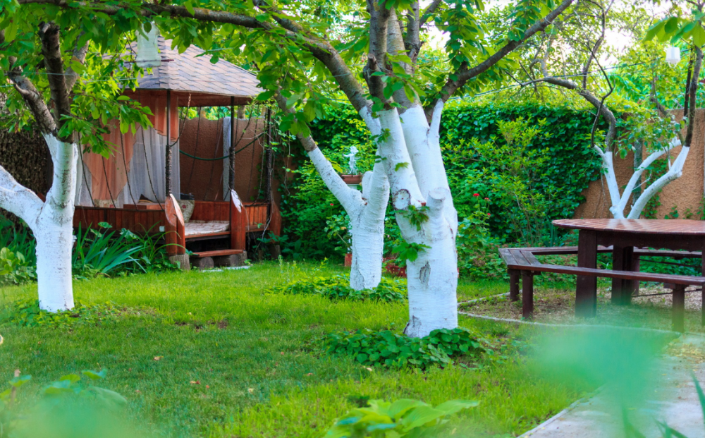 На территории находится баня на дровах (дополнительная услуга). Это отдельно стоящий домик в саду. Состоит из комнаты отдыха, душевой, парилки, санузла. Парилка рассчитана на 6 человек. Два лежачих места в полный рост. Топка металлическая, наполнена камнями. В душевой имеется ведро с холодной водой. Два душа. В комнате отдыха диван, стулья, столик, холодильник, телевизор, вся посуда и бельё. В Вашем распоряжении будет большая территория сада.