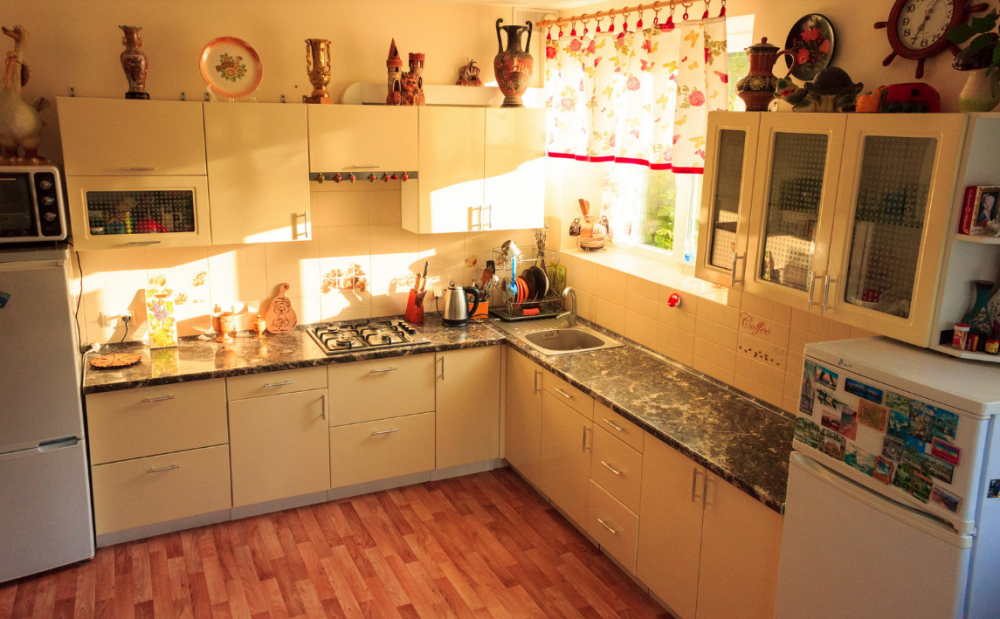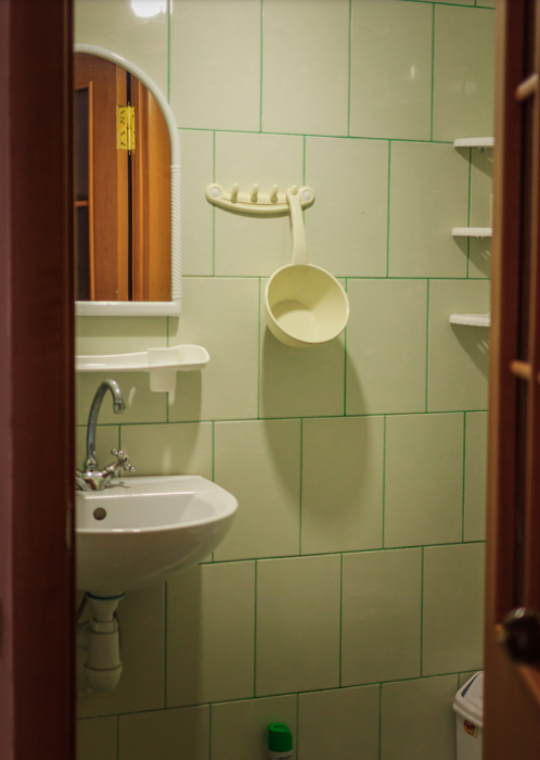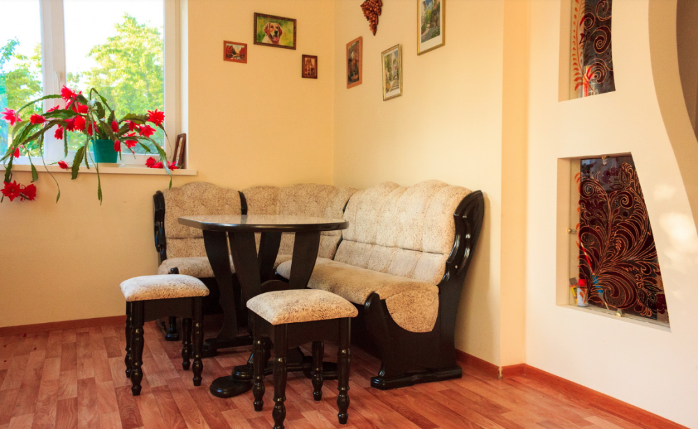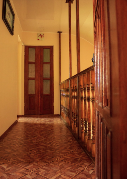 Комнаты с удобствами на этаже: новая мебель, одно- или двуспальные деревянные кровати (дополнительное место - раскладные диваны, кроватка для детей), комоды, столики, стулья, вешалки для одежды, постельное, полотенца, утюг, гладильная доска (без кондиционеров).