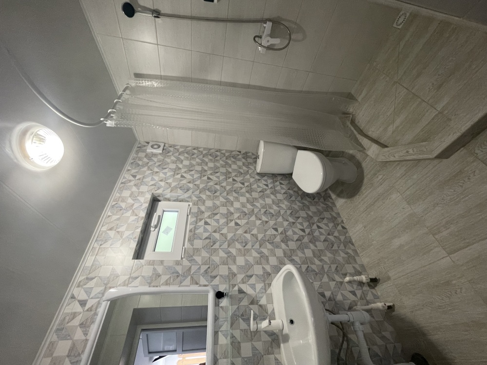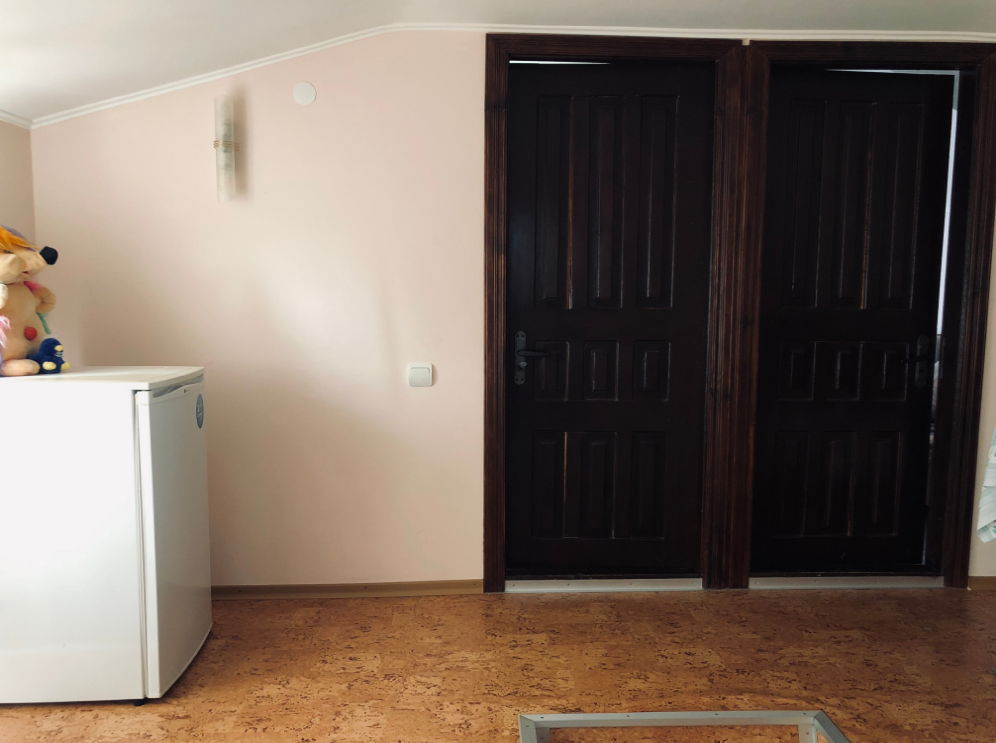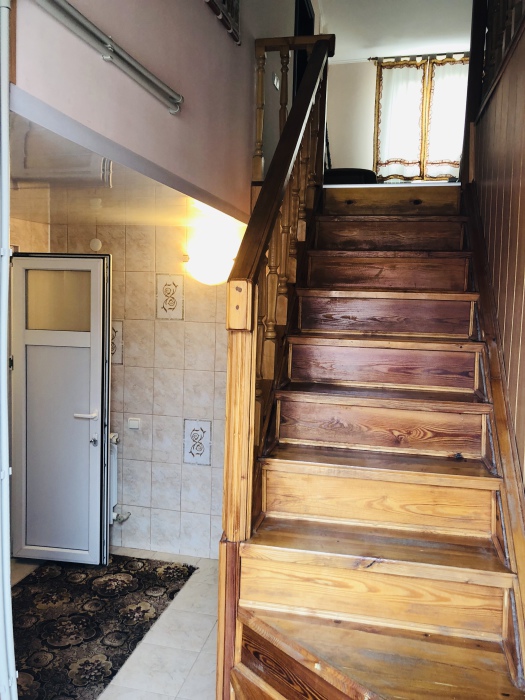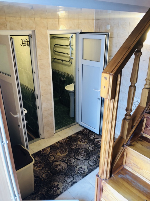 Домик двухэтажный. Санузел и душ находятся на первом этаже, три жилые комнаты на втором этаже.