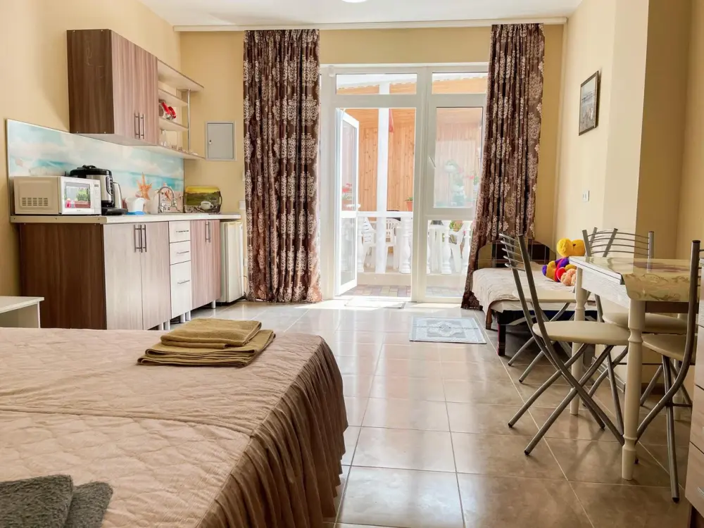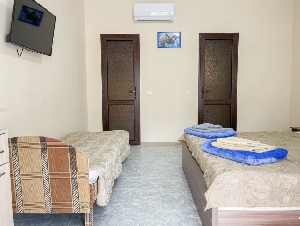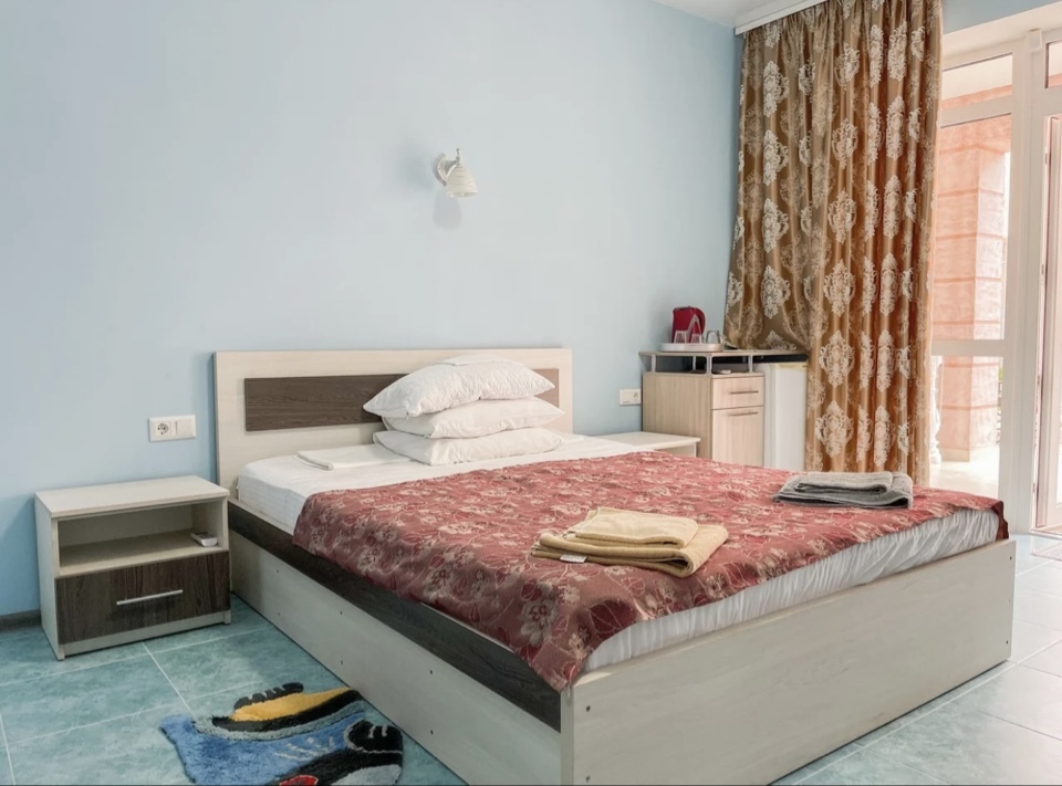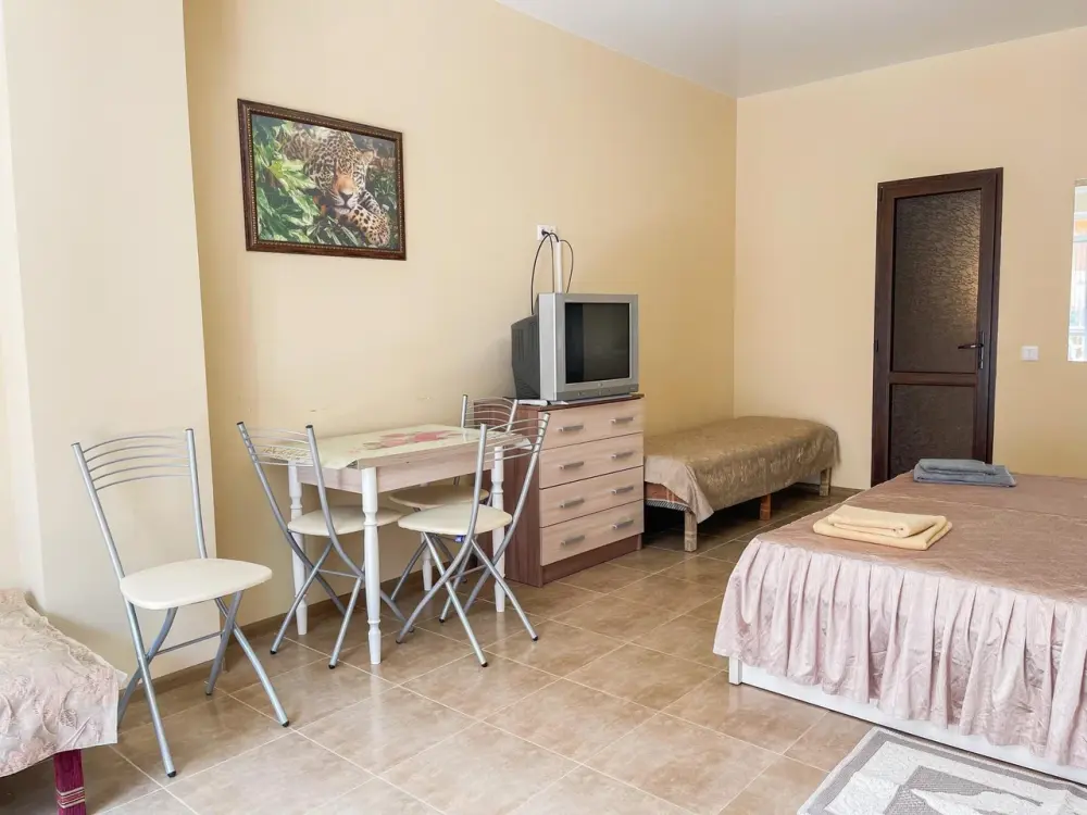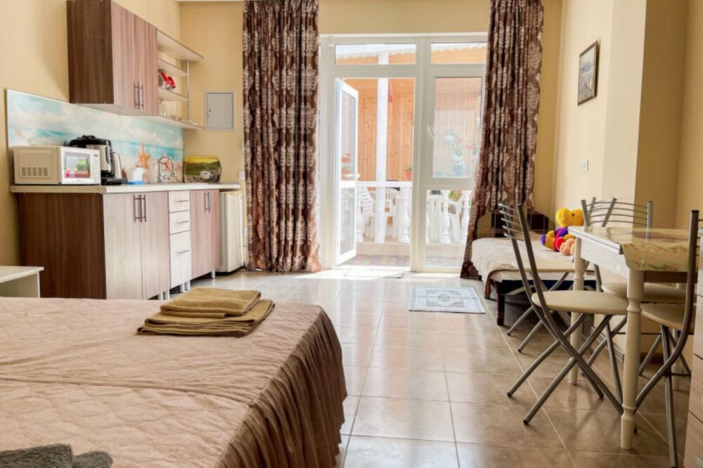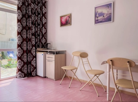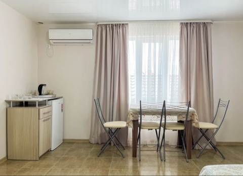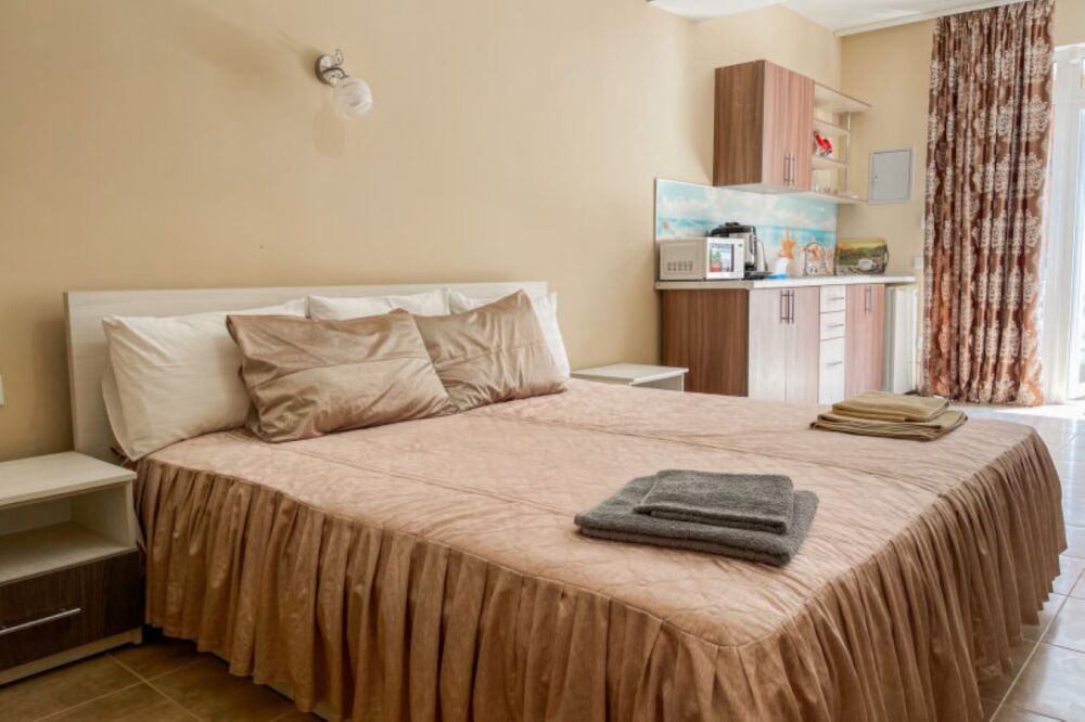 Имеется полностью оборудованная, благоустроенная кухня для самостоятельного приготовления пищи (холодильники, посуда, плита). В шаговой доступности от нас располагаются: центр села детской площадкой, , кафе, магазины. Во всех номерах независимо от категории есть телевизор, кровати, кондиционер, гардеробная, зеркало, стол, Wi – Fi. Говорить о преимуществах отдыха у нас можно долго, лучше приезжайте и наслаждайтесь отдыхом у моря!