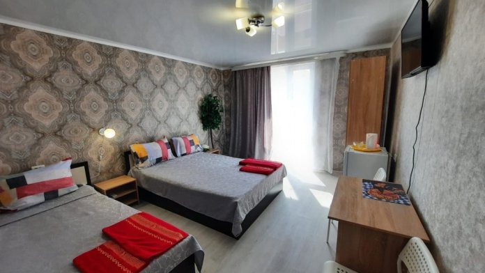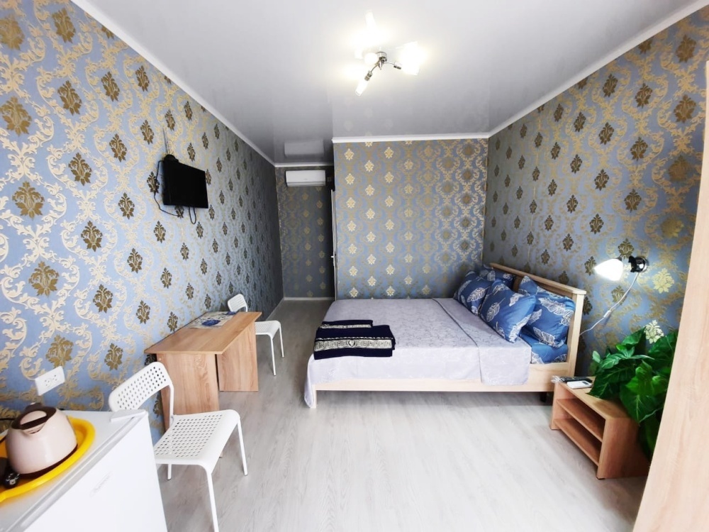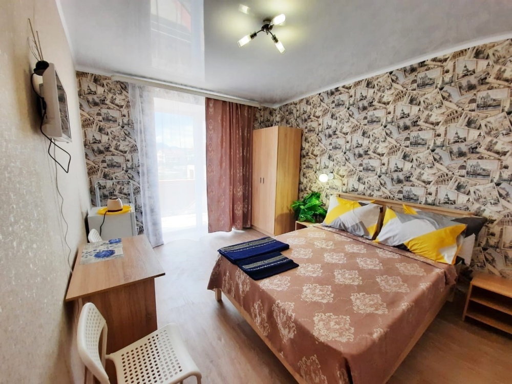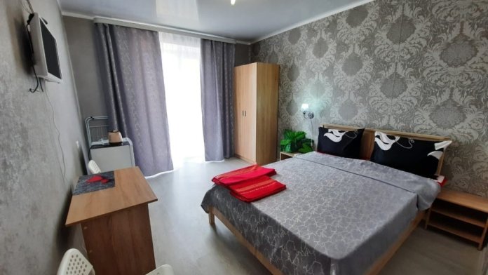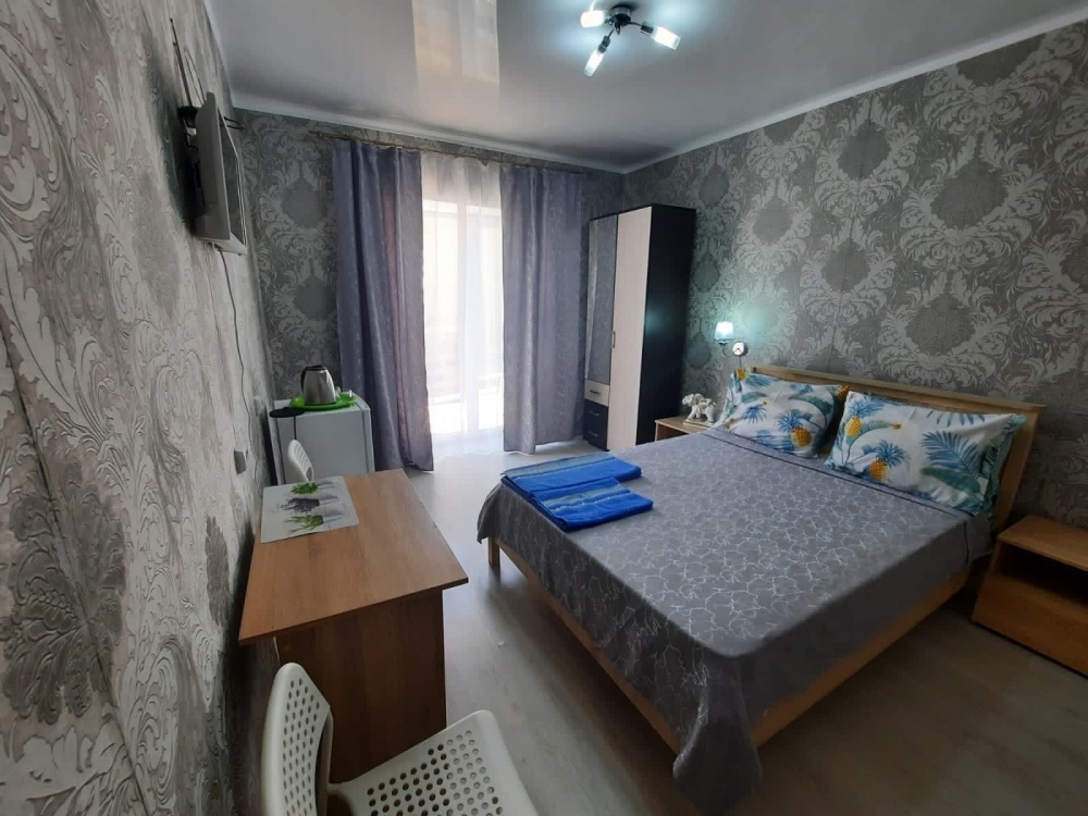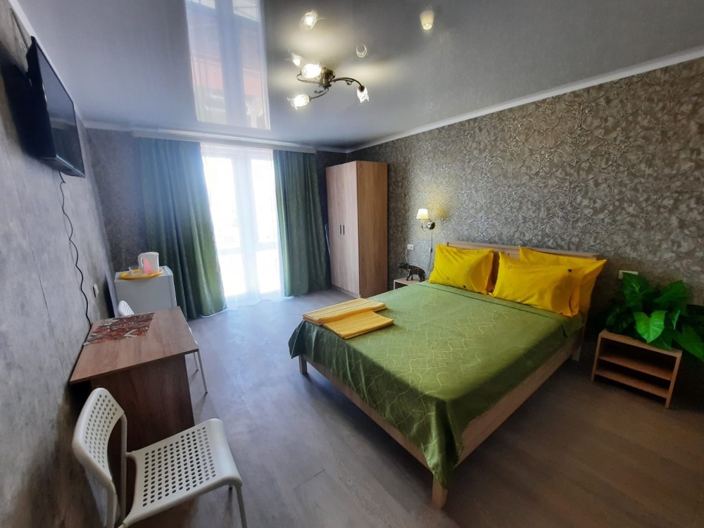 В номере: 2-местная кровать, одноместная кровать, шкаф, стол, стулья, 2 тумбы, зеркало, кондиционер, телевизор, холодильник, чайник, посуда, сушилка для белья, интернет Wi-fi.