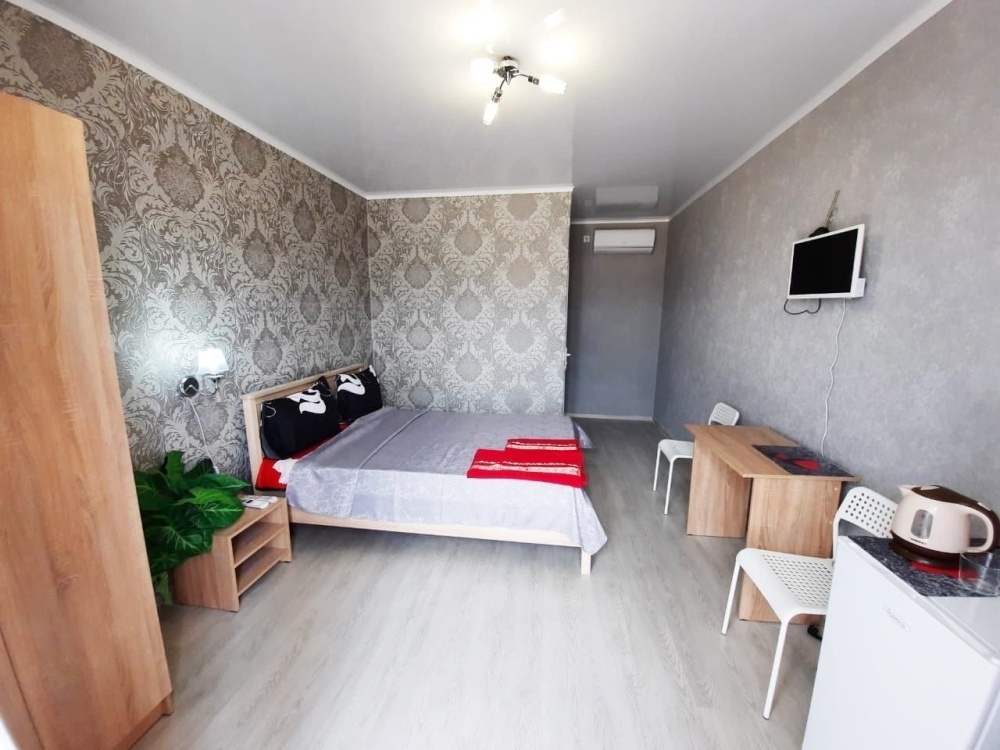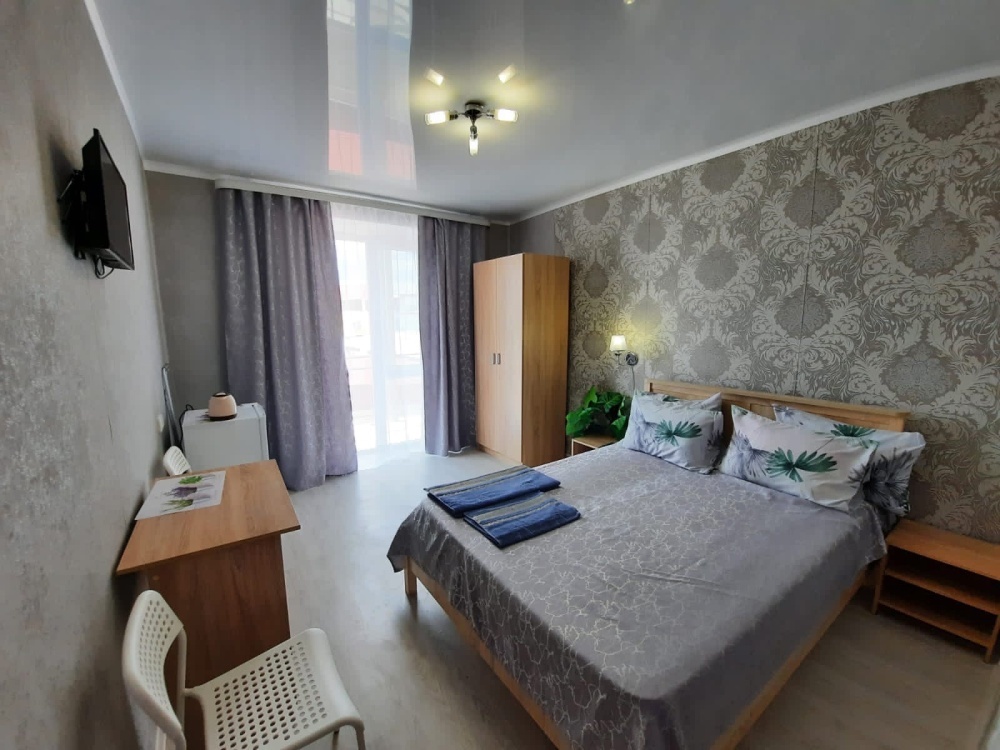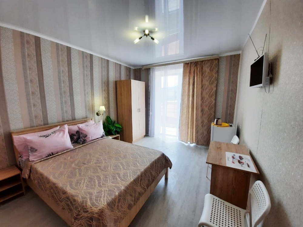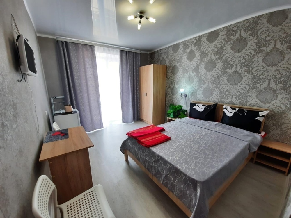 В номере: 2-местная кровать, шкаф, стол, стулья, 2 тумбы, зеркало, телевизор, кондиционер, холодильник, чайник, посуда, сушилка для белья, интернет Wi-fi.