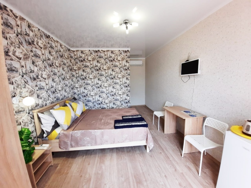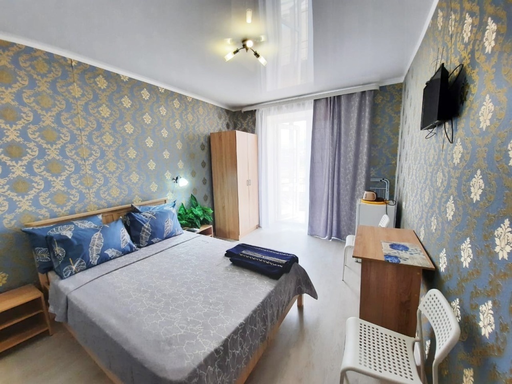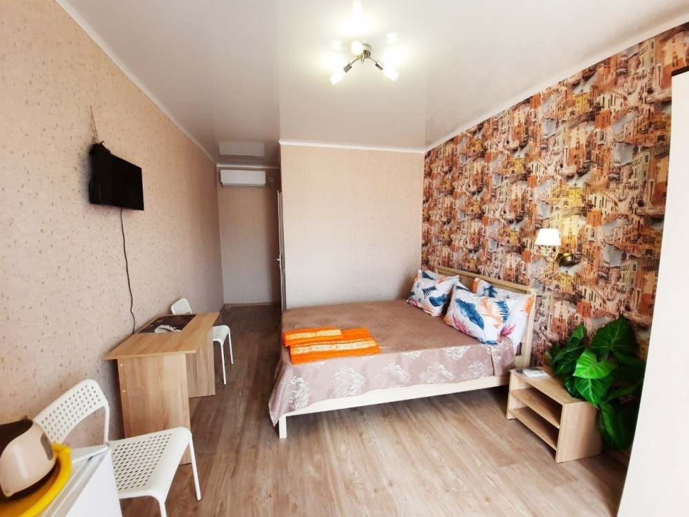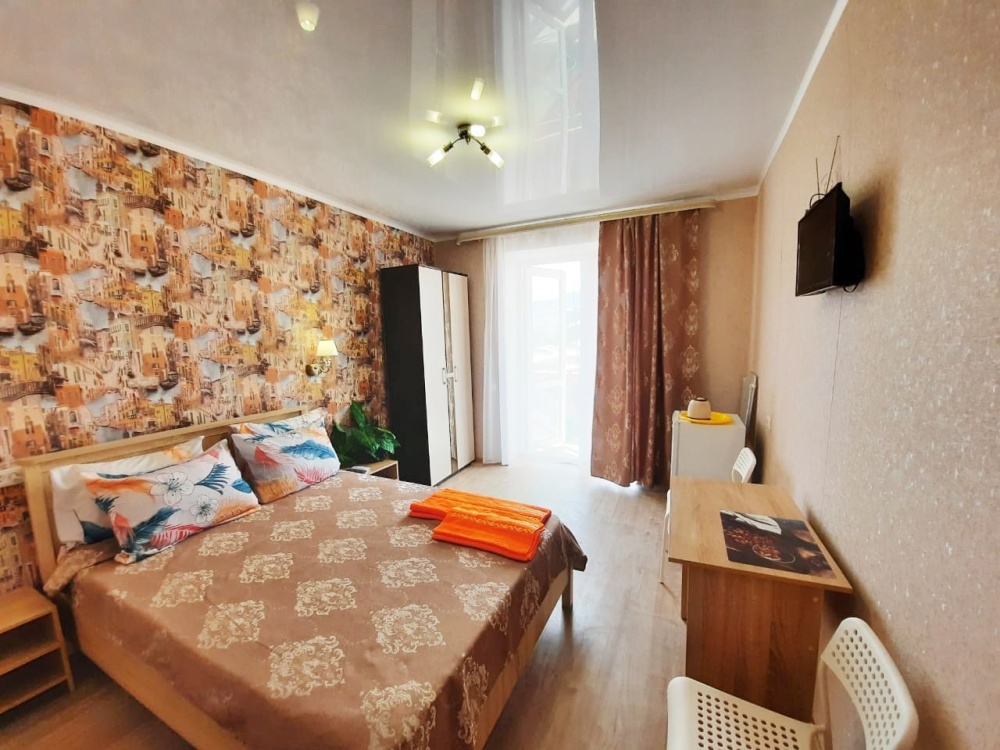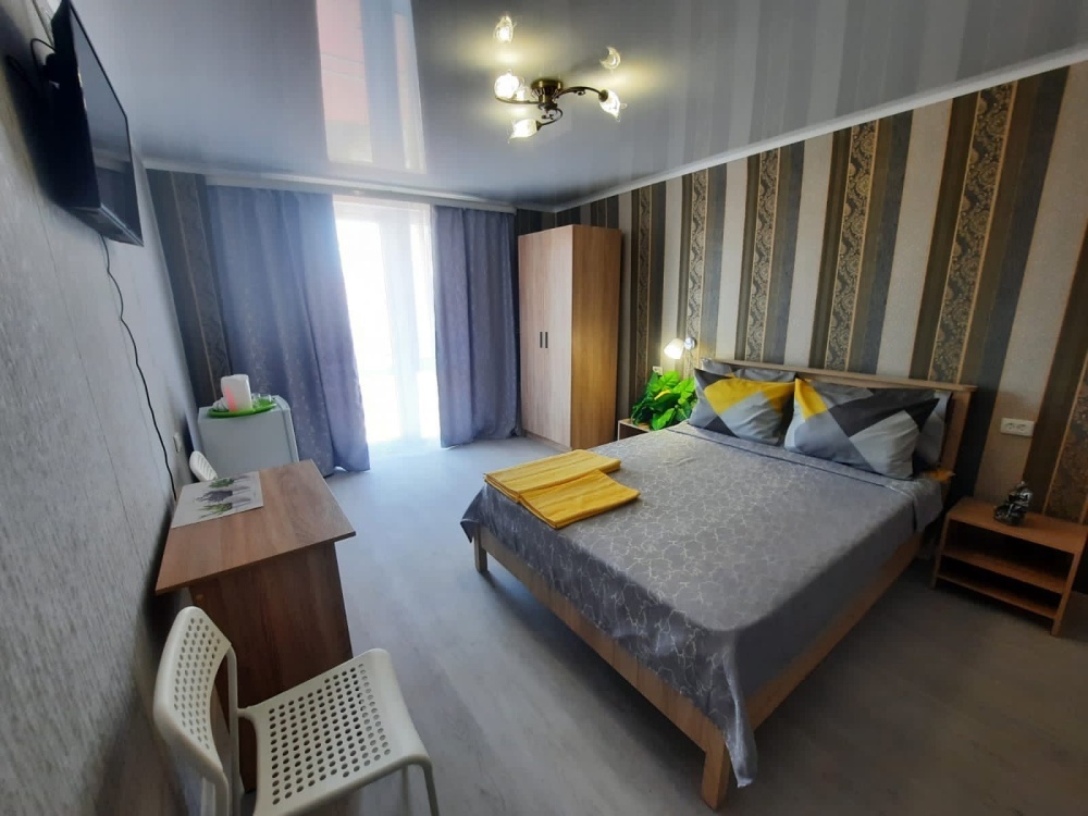 В номере: 2-местная кровать, шкаф, стол, стулья, 2 тумбы, зеркало, телевизор, кондиционер, холодильник, чайник, посуда, сушилка для белья, интернет Wi-fi.