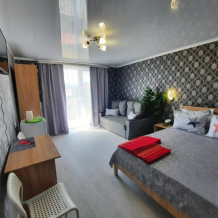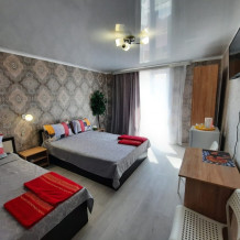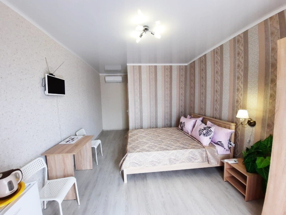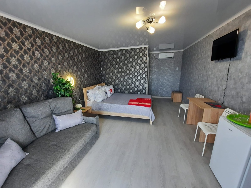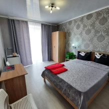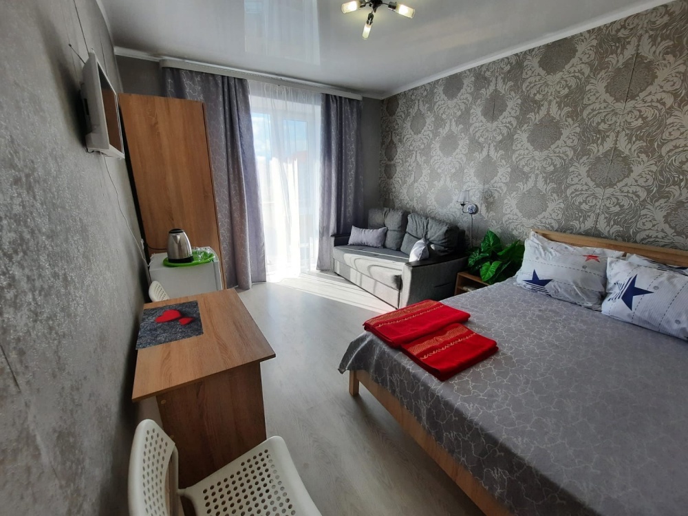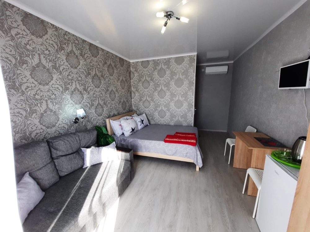 В номере: 2х-местная кровать, раскладной диван на 2 человека (можно поставить дополнительное место-еврораскладушку), шкаф, стол, стулья, 2 тумбы, зеркало, кондиционер, телевизор SMART TV 32 дюйма, холодильник, чайник, посуда, мультиварка, сушилка для белья, интернет Wi-fi.