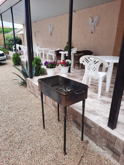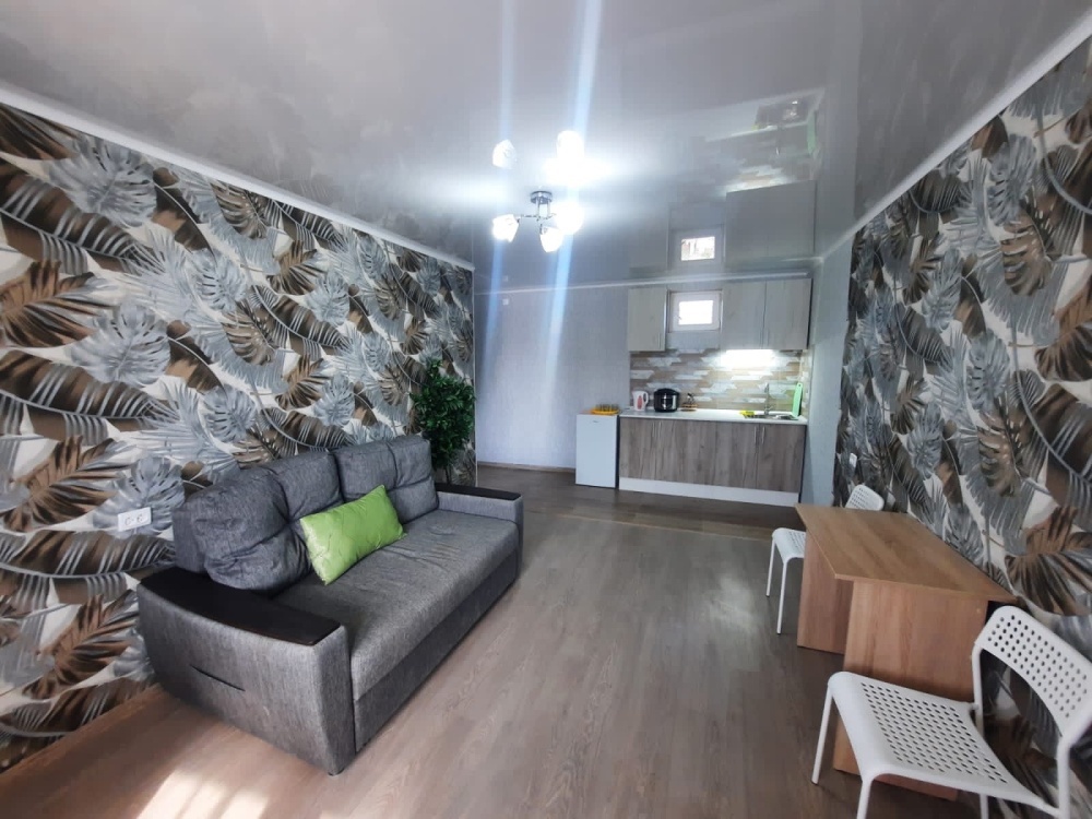 Предлагаем однокомнатные просторные номера на 2-5 человека Полулюкс, Стандарт и 2-комнатный Люкс с кухней. Во дворе есть кухня для самостоятельного приготовления пищи. На общей кухне есть холодильник, печка, плита, мультиварка, микроволновка, посуда, мойка, чайник. Зона отдыха (мангал с шампурами, столы, навес, телевизор, музыкальный центр). Wi-Fi на всей территории и в номерах. Ограничение – запрещено курить в номерах.
