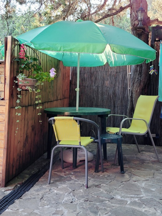 Во дворе расположен еще один домик, для пары.Общий только вход на участок.Домики расположены отдельно друг от друга.Это не гостевой дом,где коридорная система,где на каждом этаже по 2-5 номеров и более,где одна кухня на этаже для всех.В домике Прованс у отдыхающих индивидуальные условия: личная кухня,туалет,стол и кресла для отдыха во дворе.Участок не перегружен отдыхающими, не многолюдно,организован так,чтобы у каждого домика был отдельный участок для отдыха на свежем воздухе в тени можжевеловых деревьев.