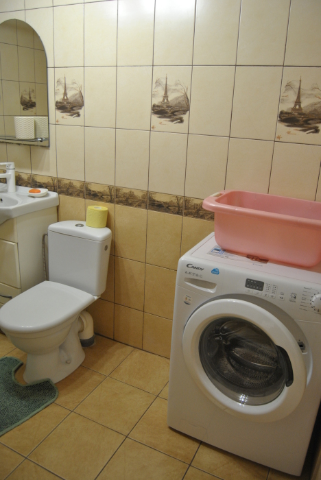 Один из недостатков (или преимуществ) кухня + ванная находится через проход двора (5 метров).