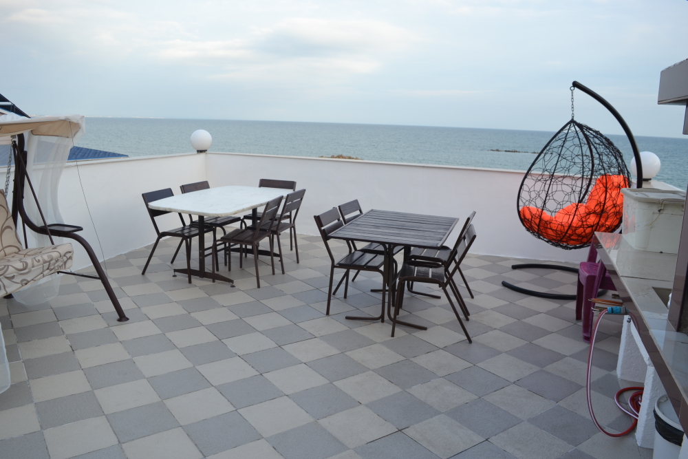 На пляже есть крытые навесы, шезлонги, массаж, кафе. От нас начинается полоса пляжей в 5 км.