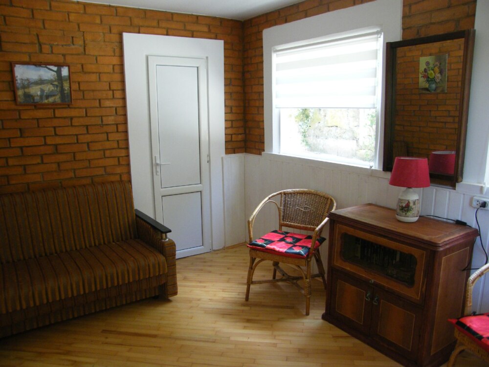 Дом в лесу на границе заповедника. Состоит из двух отдельных частей, каждая из которых - это комната и свой санузел, а кухня расположена между ними, есть 2 открытые веранды, двор, мангал, стоянка для автомобиля вдоль дороги. Всего может разместиться 5 человек.