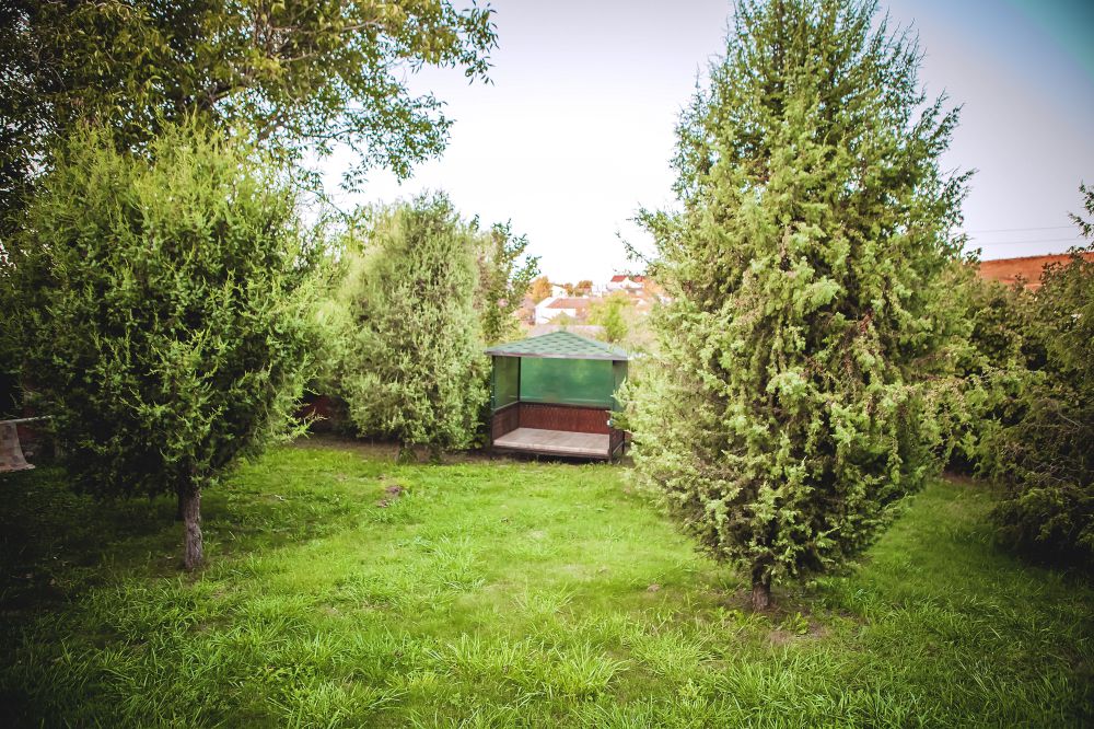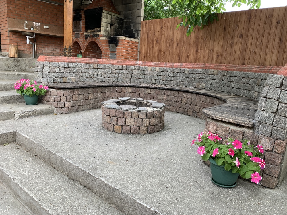 Большая зеленая территория, зоны для отдыха на свежем воздухе, мангал, беседка, качели.