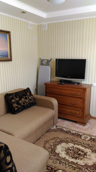 Удобная инфраструктура, рядом находится: музей и кафе Караимские Кенасы -1 мин. пешком, мечеть, синагога и собор -3 мин, рынок, гипермаркеты и магазины -3 мин, набережная, море с пляжем и Аттракционы -3 мин; в доме имеется: туалет, ванная, душ, х/г вода, кухня, газ плита, широкий раскладной, угловой диван, 2х спальная кровать (180х200), мебель в каждом помещении, телевизоры в каждом помещении, холодильник, микроволновка, кондиционеры, утюг, фен, Wi-Fi.