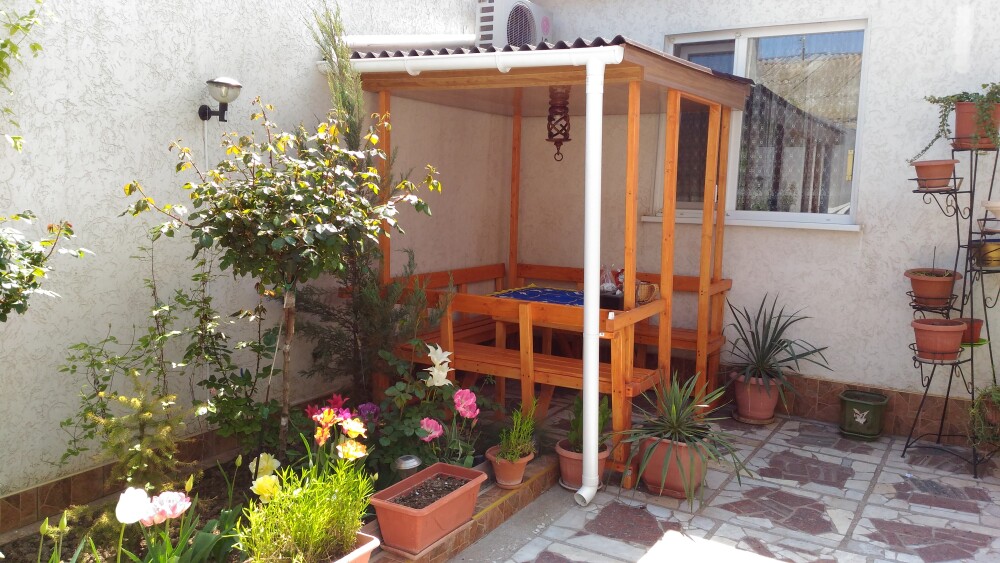Сдаю посуточно комфортный и уютный «Улучшенный семейный» 2х комнатный -45 м. кв. (4х местный, на земле), в цветущем, ухоженном, закрытом от внешней среды частном дворе, в исторической старой части города Евпатории, есть места для авто.
