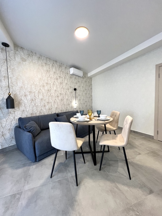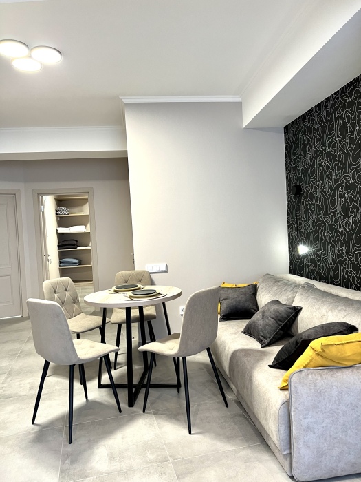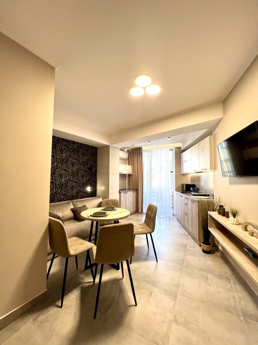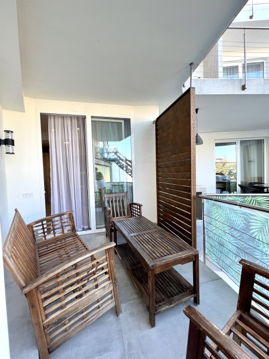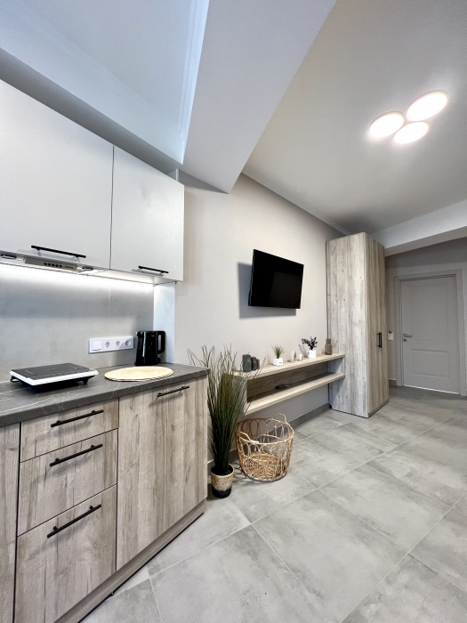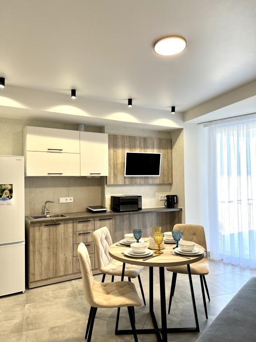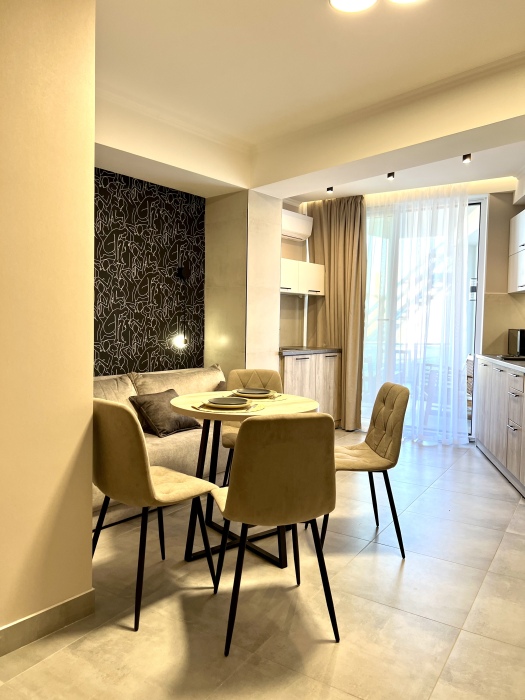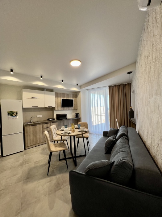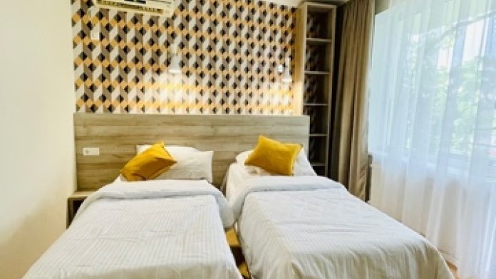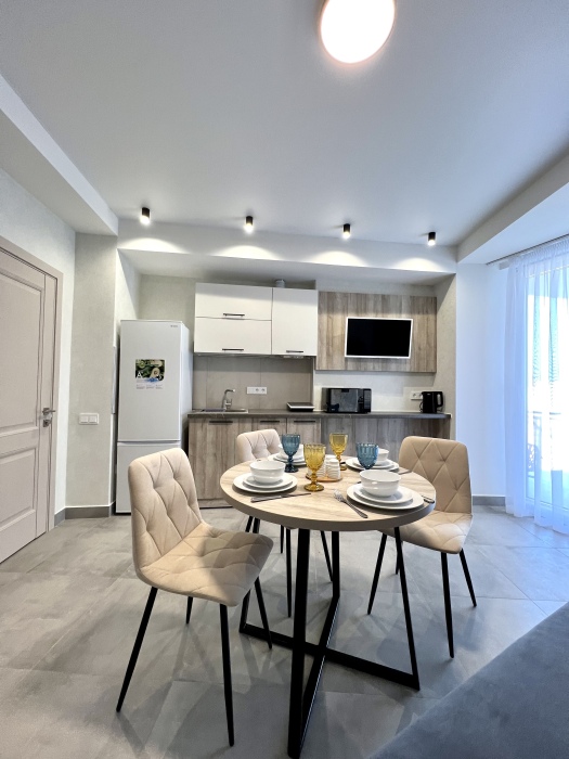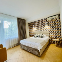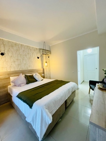 Элегантные номера оснащены кондиционером, телевизором с плоским экраном и спутниковыми каналами, холодильником, электрочайник, посудой (тарелки, ложки, вилки, стаканы, чашки). В каждом номере есть балкон. На балконе стол и стулья для отдыха. В номерах удобная современная мебель, ортопедические матрасы. Предоставляются постельные принадлежности, комплект полотенец.