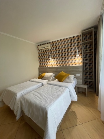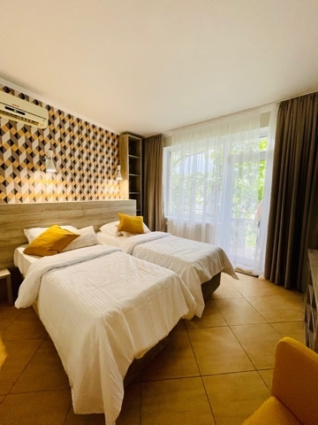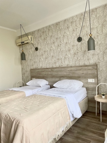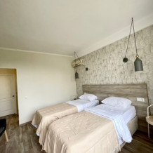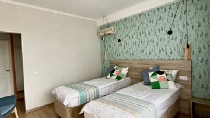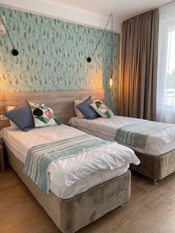 2-местный номер оснащён кондиционером, телевизором, шкаф, зеркало, душевая кабина, умывальник, туалет. Возможно размещение с ребёнком, доставляется евро раскладушка, бесплатно. На балконе у номера имеется личная зона отдыха со столиком и стульями Горячая и холодная вода подаётся круглосуточно.