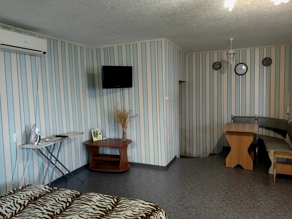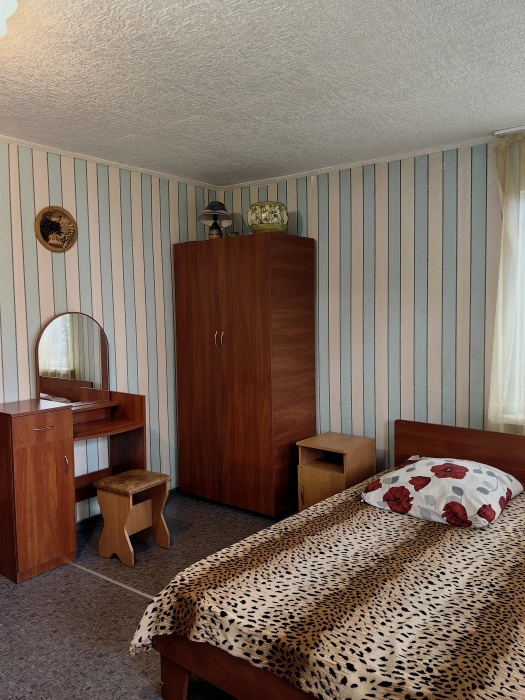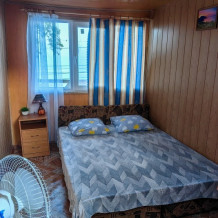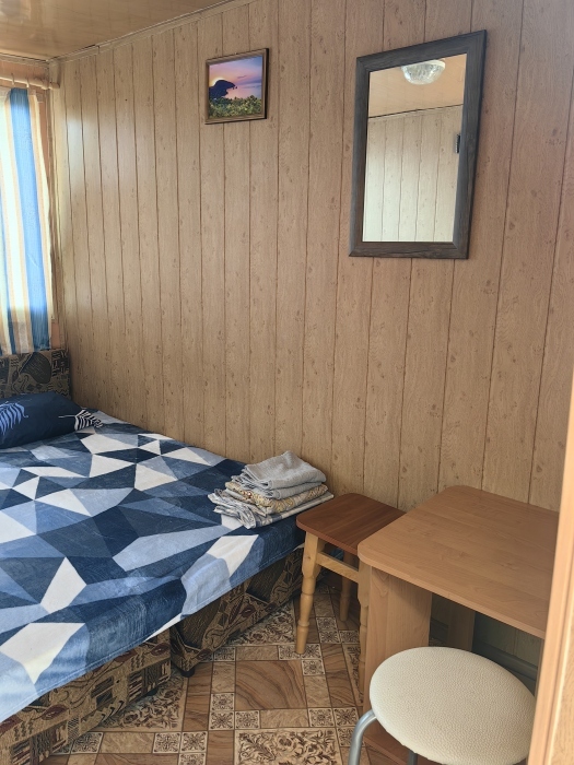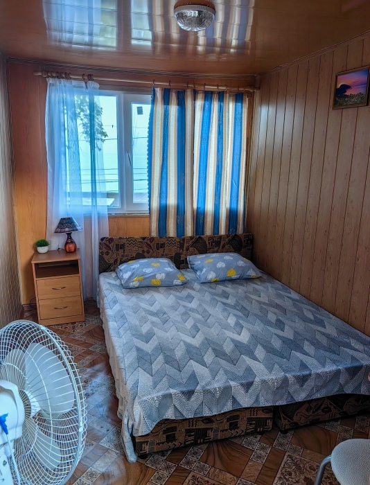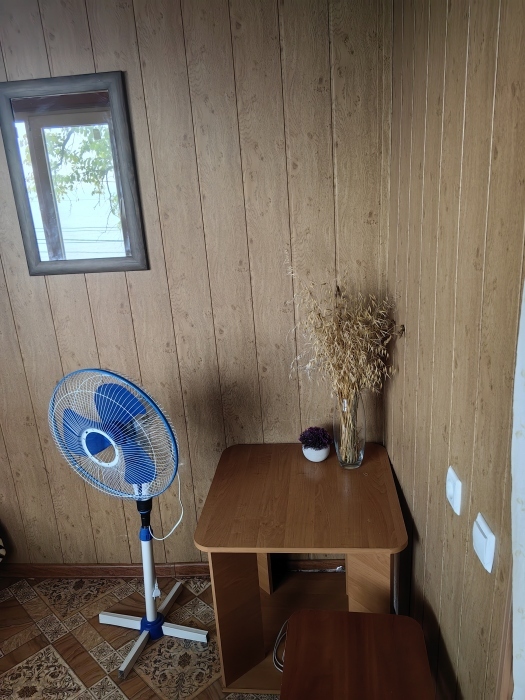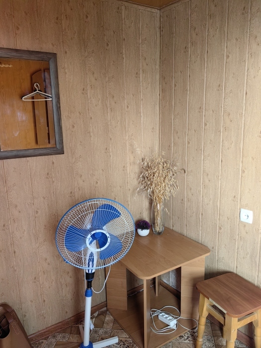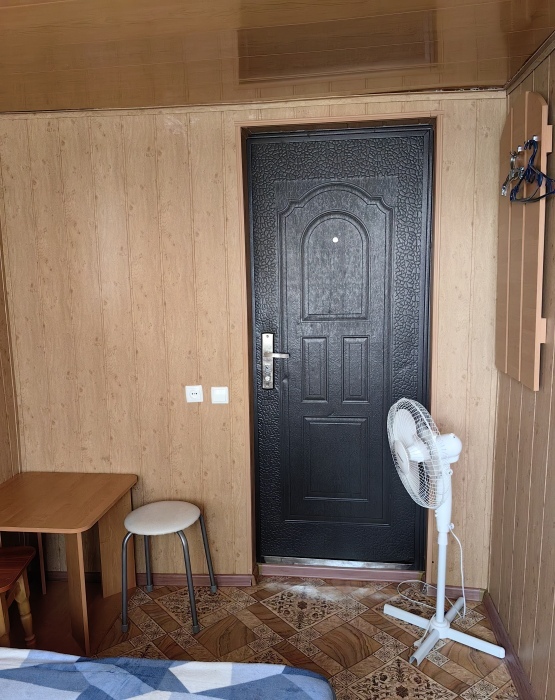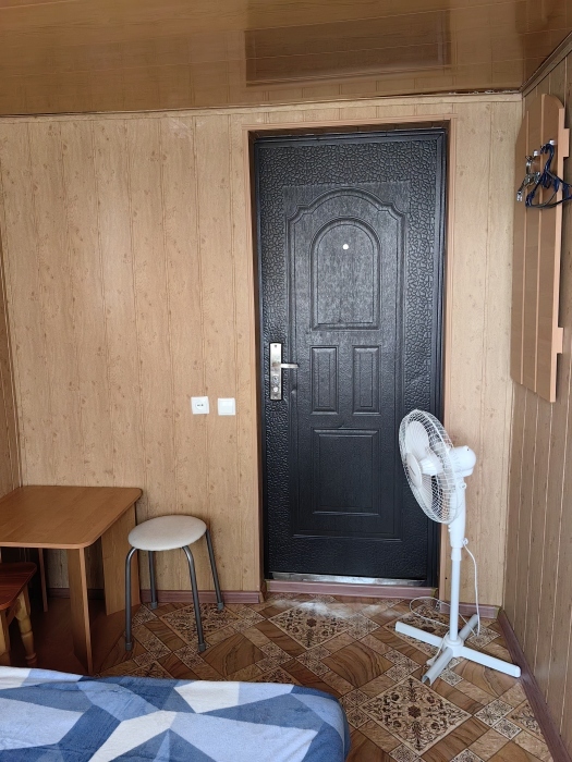 Номер оборудован всем необходимым для комфортного проживания: Wi-Fi, кровать, тумбочка, стол, настольная лампа, вешалка для одежды вентилятор, москитная сетка.