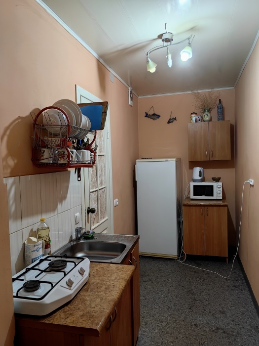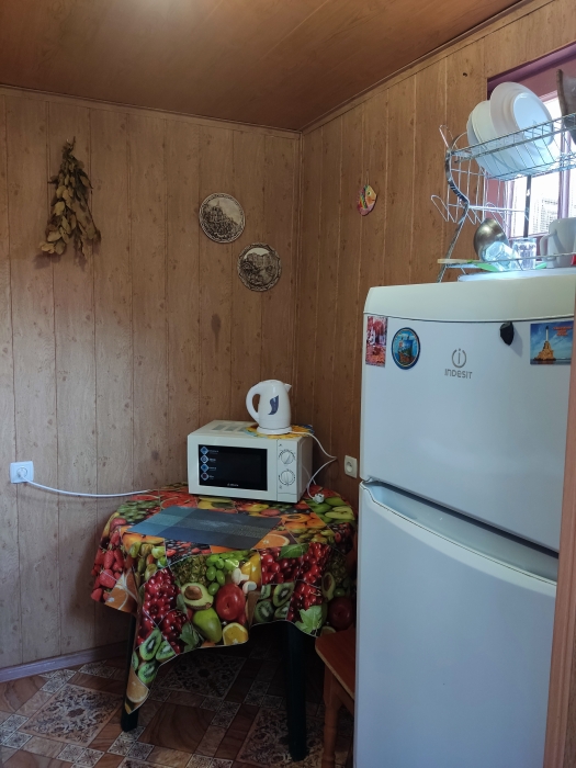 Номера оборудован всем необходимым для комфортного проживания. Wi-Fi, кровать, тумбочка, стол, настольная лампа, вешалка для одежды вентилятор, москитная сетка. Кухня и душ общий на 3 номера. На кухне имеется: микроволновка, электрический чайник, посуда, кухонный гарнитур, газовая плита.