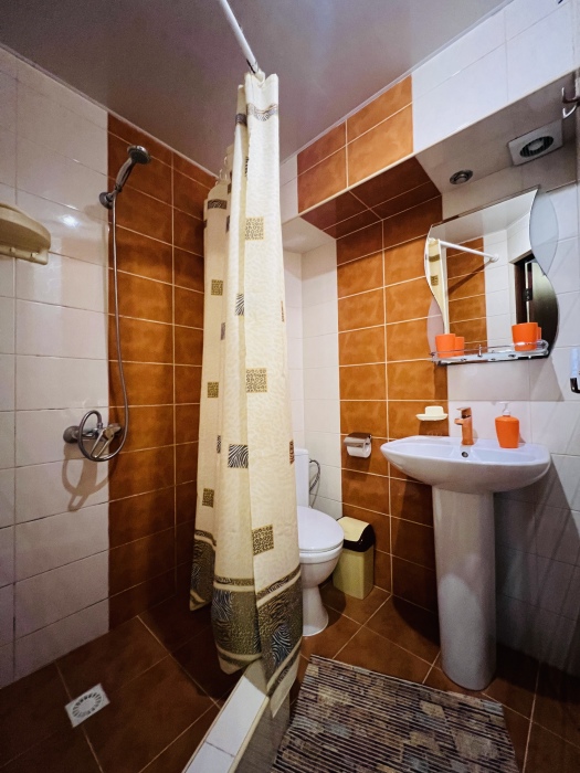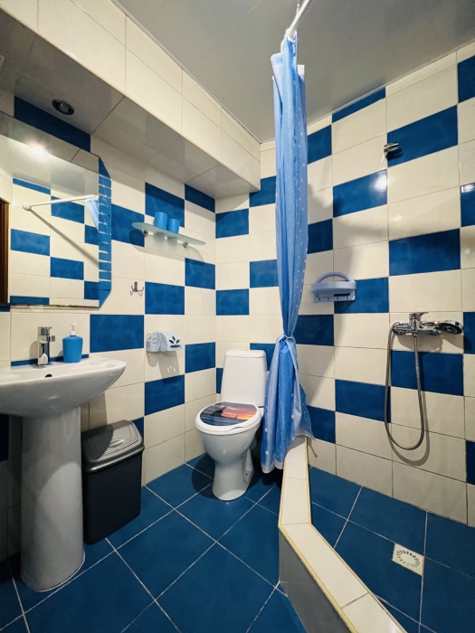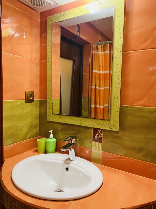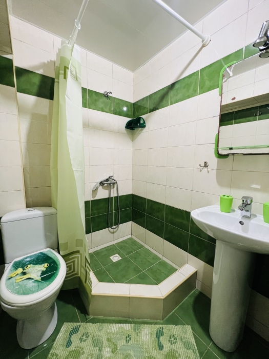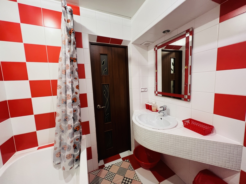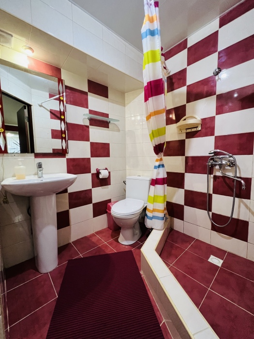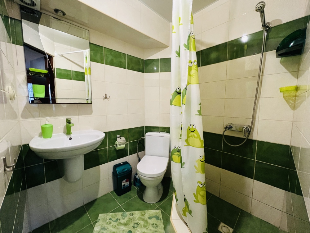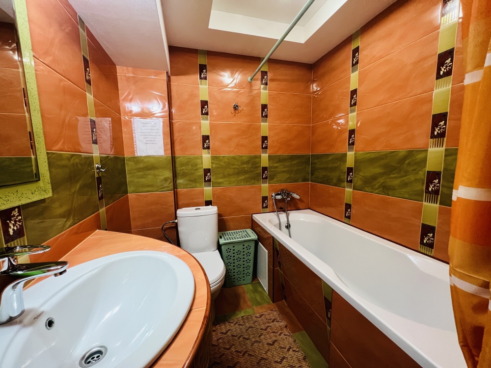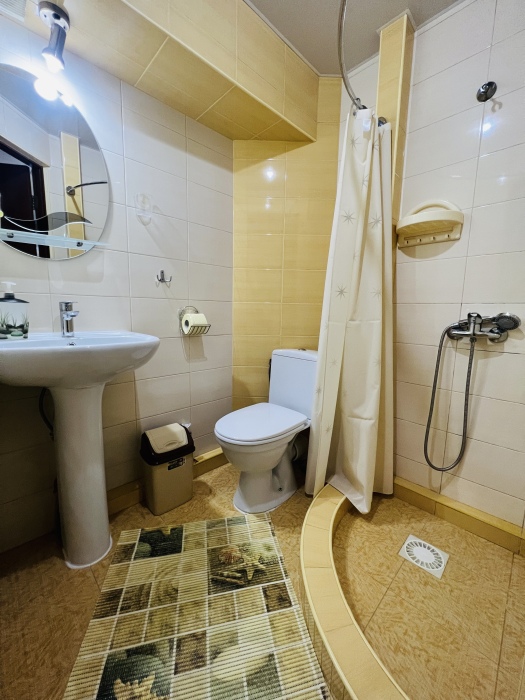 В номере смежные комнаты, есть посуда, микроволновая печь. Номер оборудован ванной.