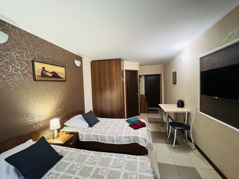 Предлагаем 3-х местный номер с двуспальной кроватью и двумя отдельными кроватями. П