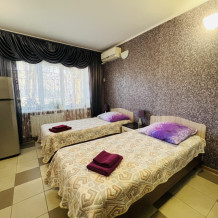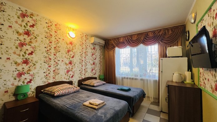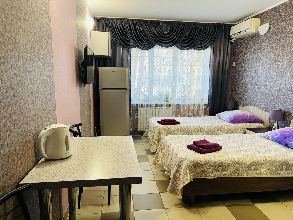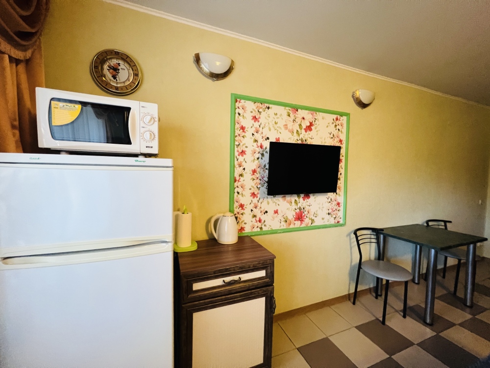 В каждом номере кондиционер, санузел, телевизор, Wi-fi, холодильник, электрочайник, и посуда. А номер люкс дополнительно оснащен кухней, что позволит вам чувствовать себя как дома.