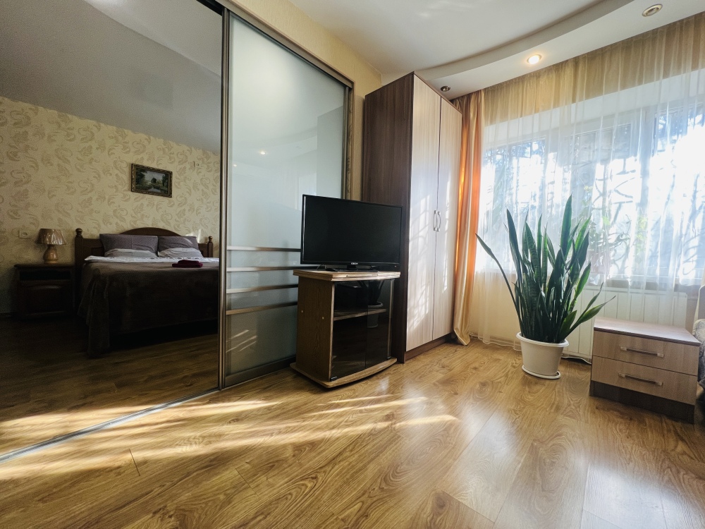 Предлагаем двухкомнатный номер люкс с отдельной кухней. В каждой комнате есть телевизор.