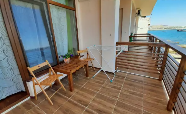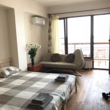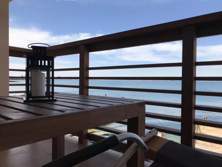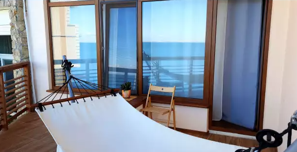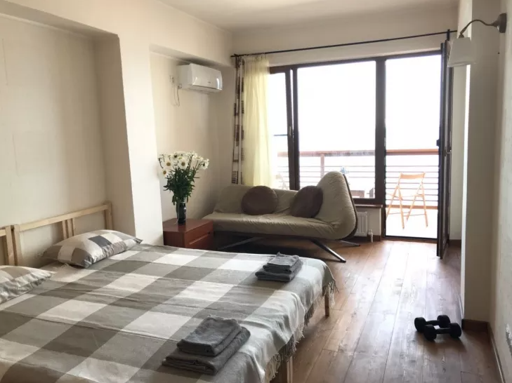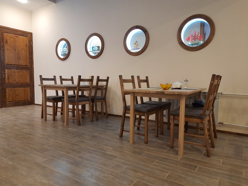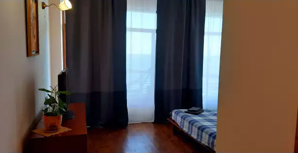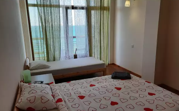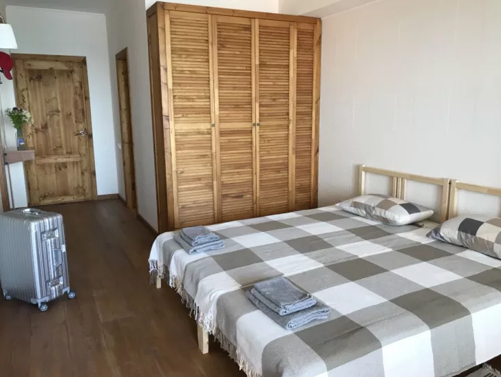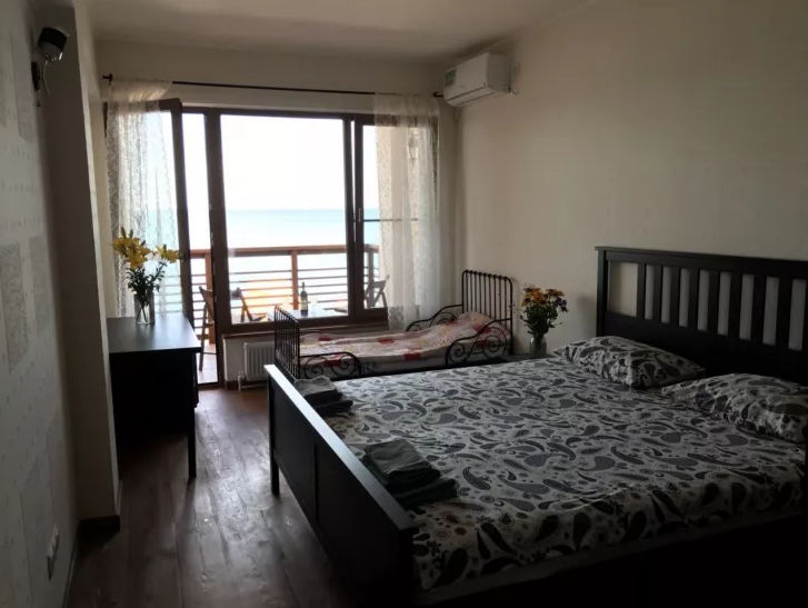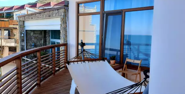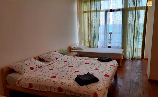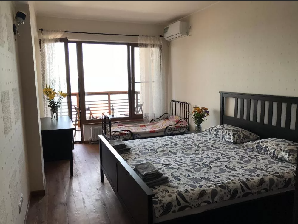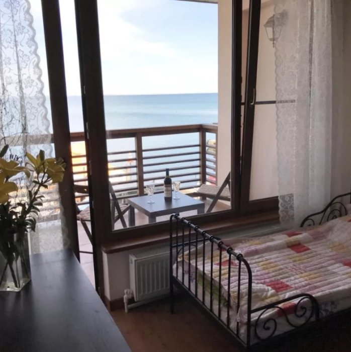 В номере двуспальная кровать или две односпальные. Холодильник на этаже. Панорамные окна и балкон с видом на море. Полы из массива лиственницы.