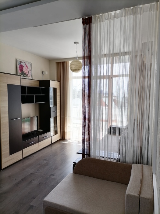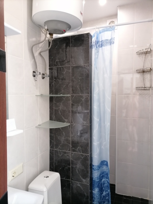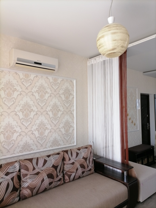 В квартире сделан хороший ремонт, есть все необходимое для полноценного проживания. На кухне все необходимые кухонные принадлежности: холодильник, электроплита 2 конфорки, микроволновая печь, электрочайник, тостер. Комната: SmаrtТV (цифровое телевидение), постельное белье, полотенца, утюг, обеденный стол, 1 большой диван и раскладывающиеся кресло. Санузел: душевая кабина, унитаз, стиральная машина, установлен бойлер. Холодная и горячая вода круглосуточно.