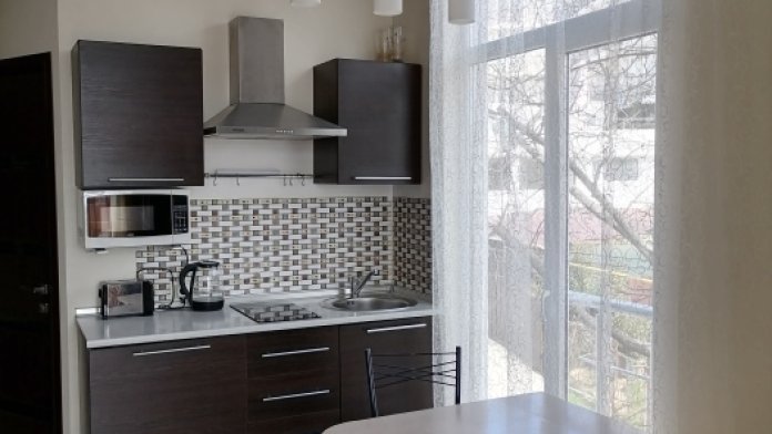 Сдается уютная светлая студия на 2-м этаже в новом пятиэтажном доме, нижняя Гаспра. К бесплатным открытым пляжам санатория «Poдинa», «Днeпp» и «Mарат» 10 минут пешком, есть возможность спуститься по небольшой канатной дороге прямо на пляж.