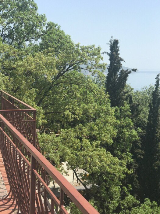 В мини-гостинице есть видовая терраса, с которой открывается вид на всю Ялту и на побережье Черного моря. На террасе можно позагорать на лежаках, посидеть за столиками попить чаю.
