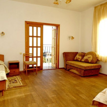 Во всех номерах установлен телевизор со спутниковыми каналами, холодильники. В части номеров обустроена гостиная зона. Из номеров полулюкс, семейного и номера с балконом открывается вид на море или горы. В собственной ванной комнате в распоряжении гостей ванна и/или душ. В номерах «полулюкс» есть кондиционеры.