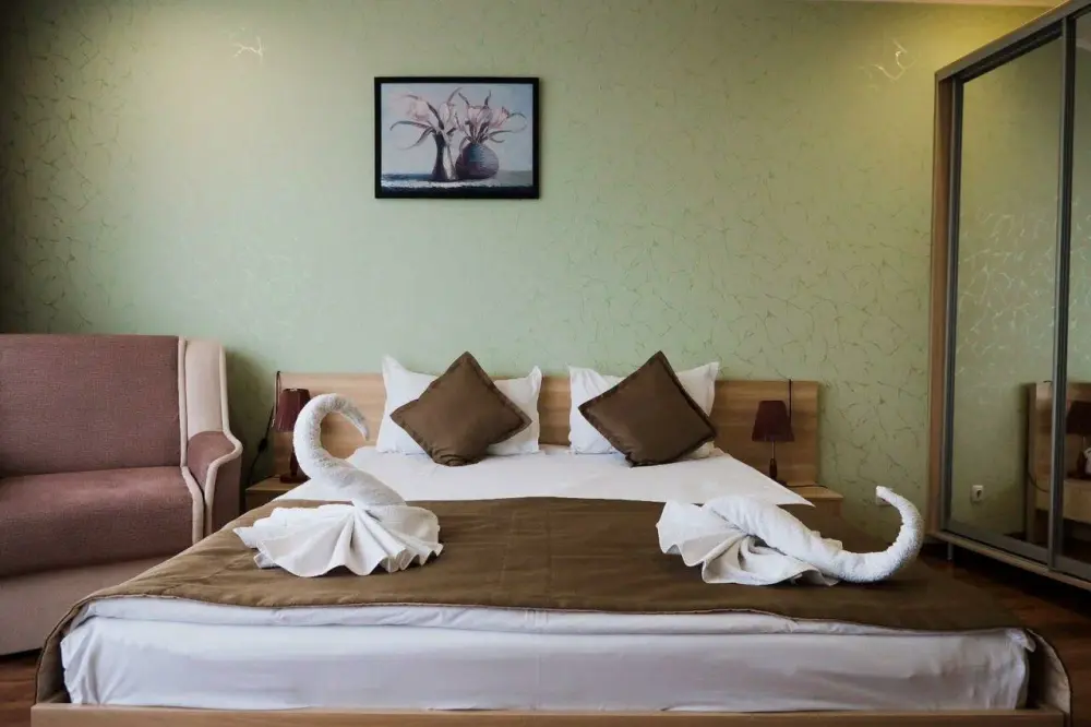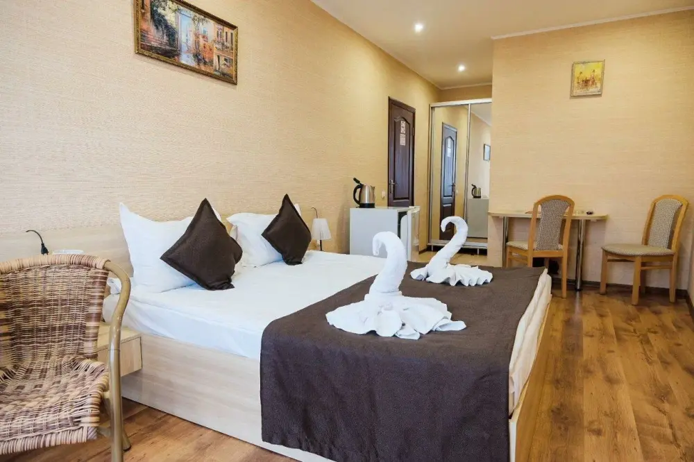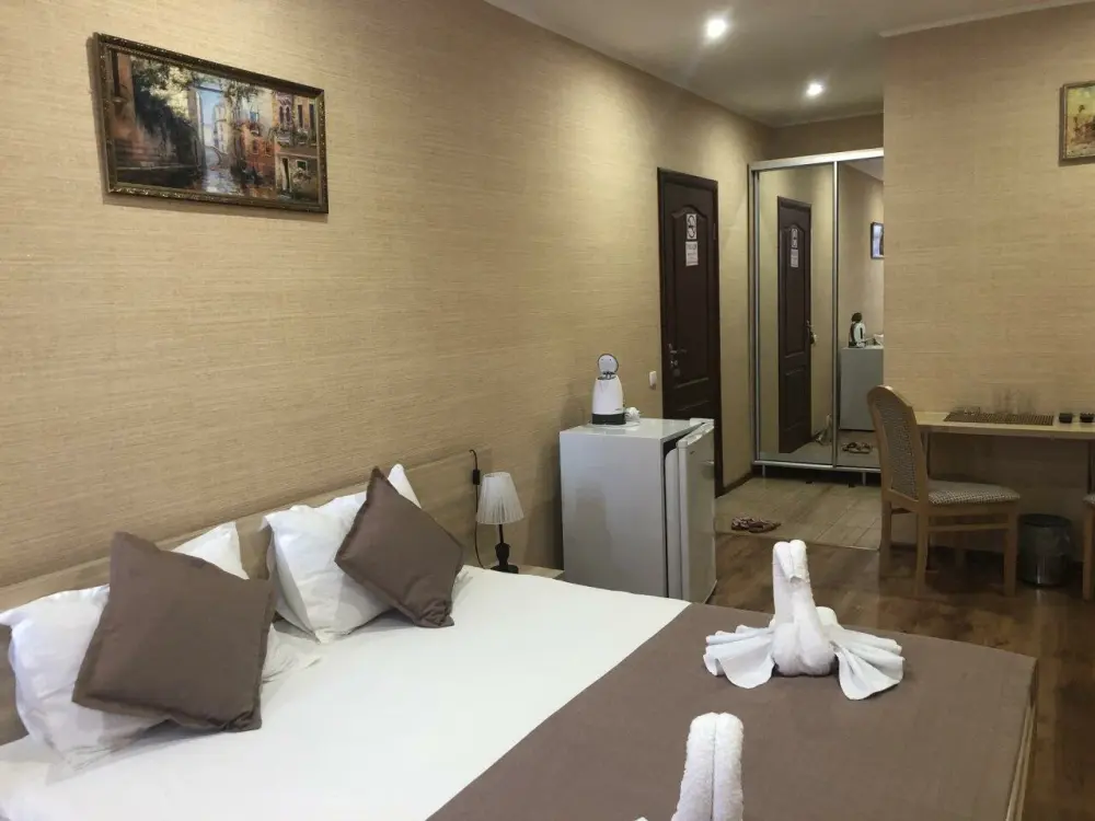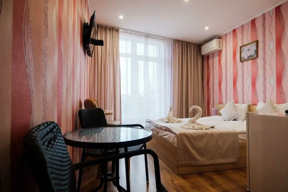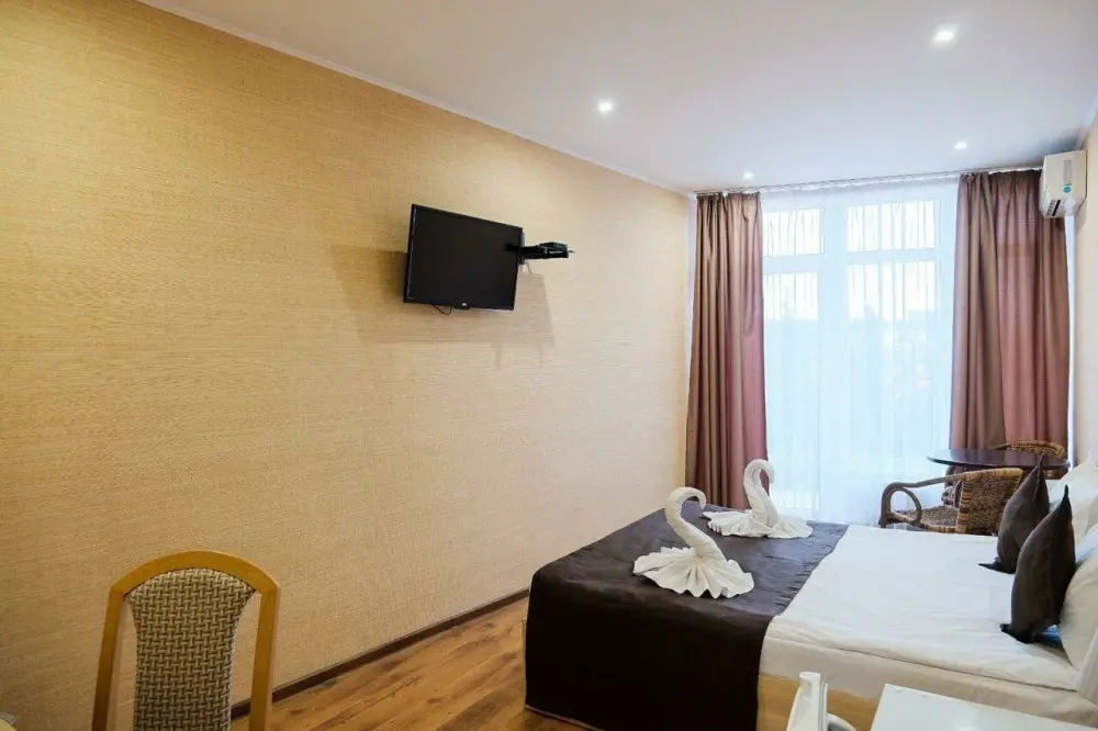 Уютные и комфортные номера с прекрасным индивидуальным дизайном, санузлы с душами, фены, кондиционеры, плазма TV со спутниковым ТВ, отоплением.