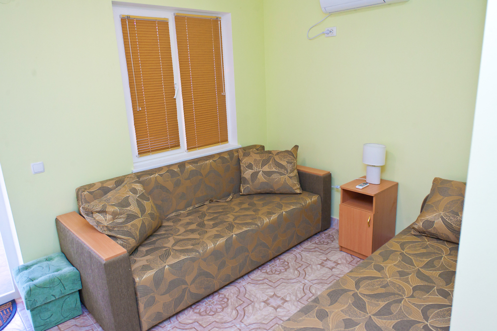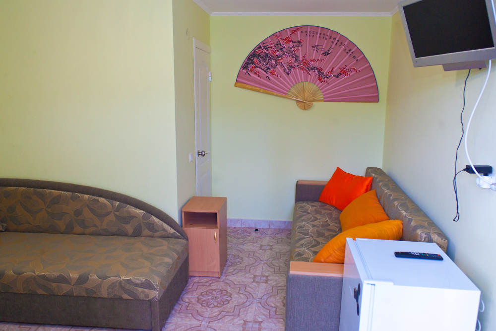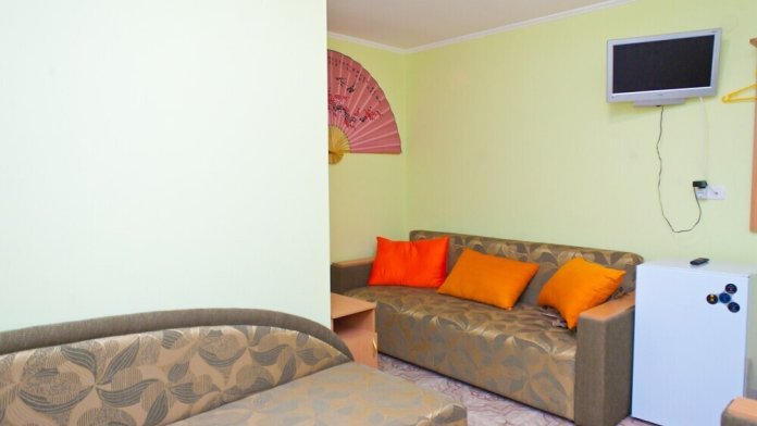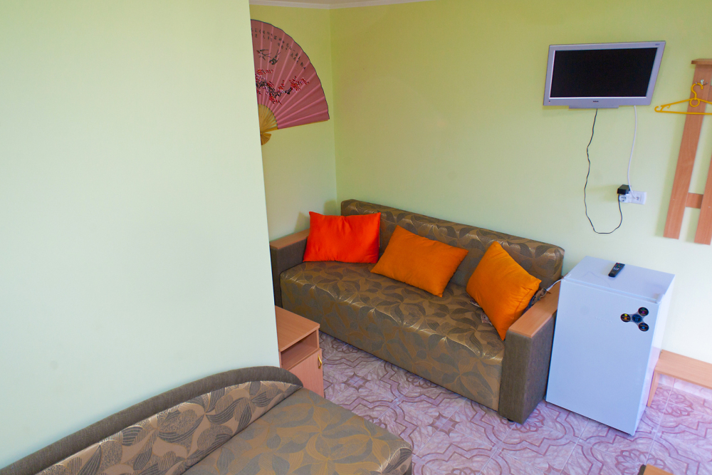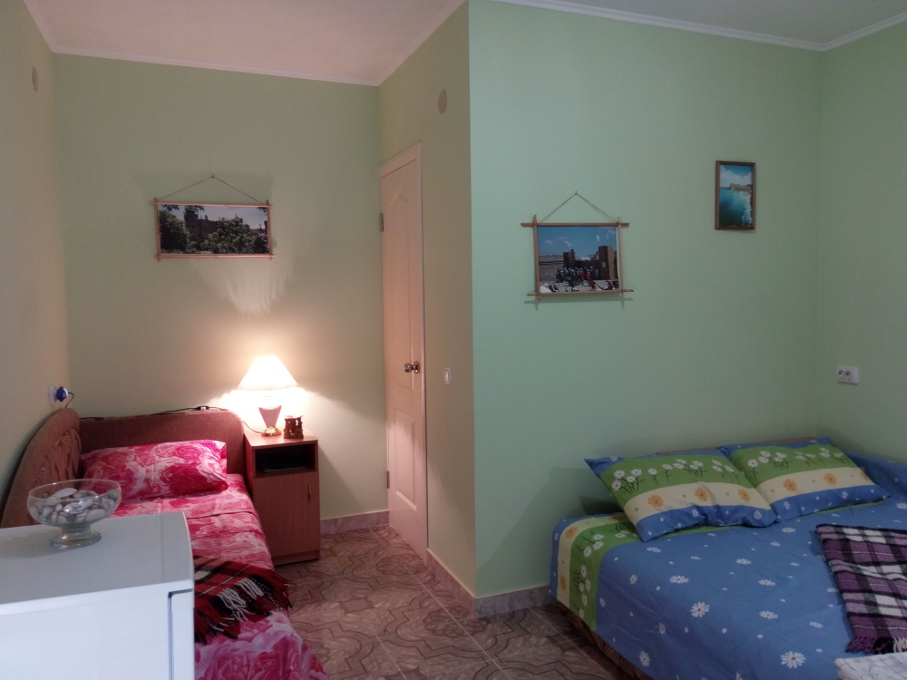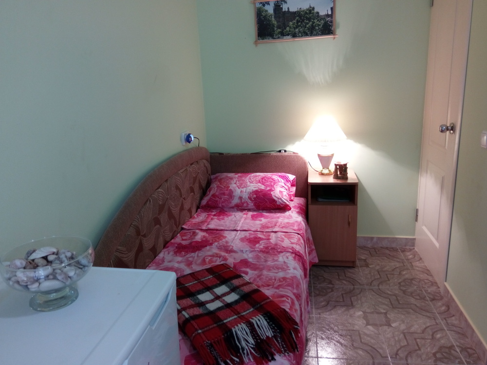 Гостевой дом представляет собой небольшой тенистый уютный дворик с 8 трехместными и четырехместными номерами, в каждом номере: душ, туалет, холодильник, кондиционер, диван-кровать из расчета 4 спальных места, телевизор с жк-экраном, кабельное телевидение, горячая и холодная вода круглосуточно.
