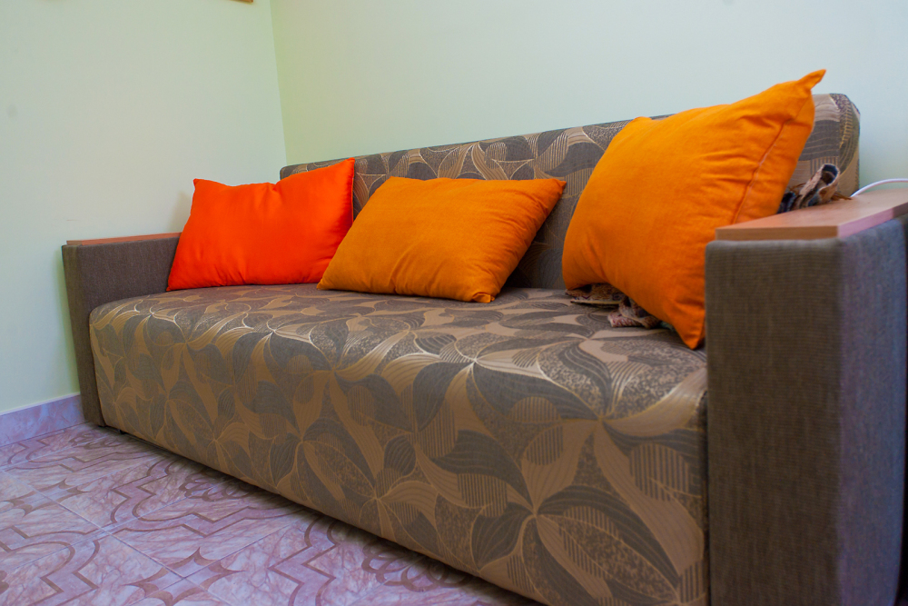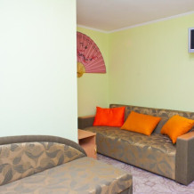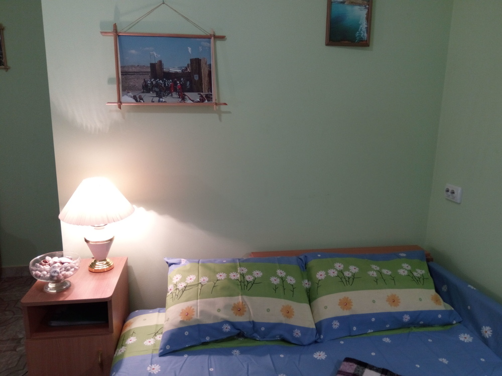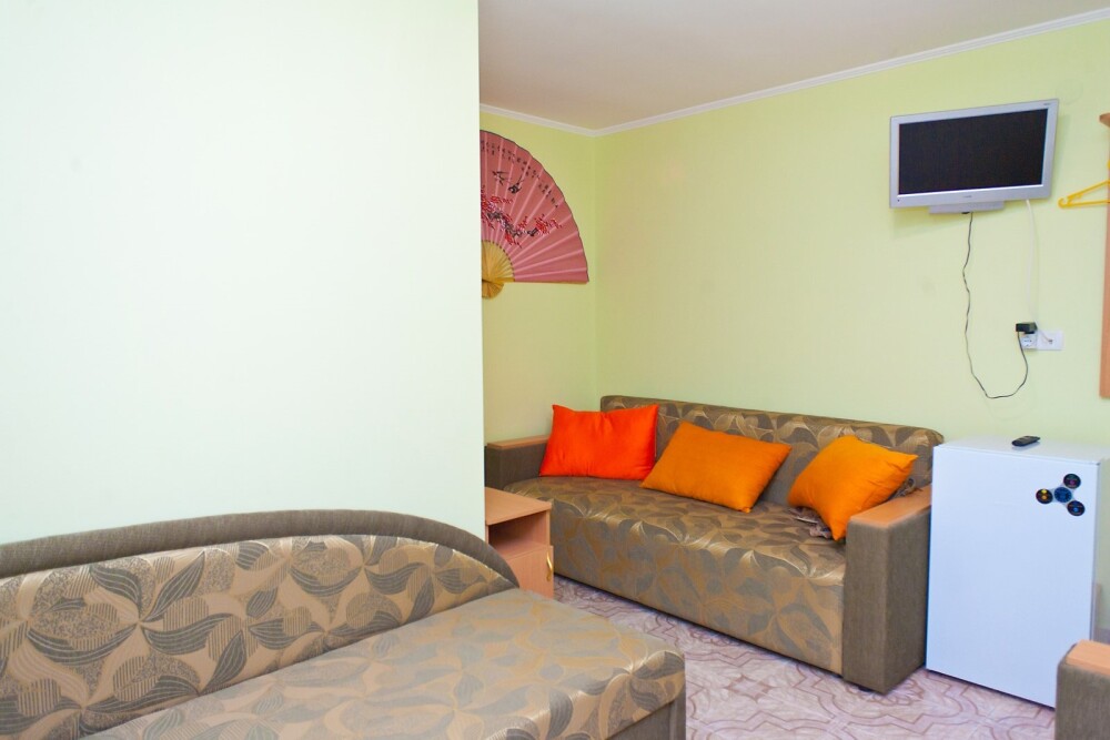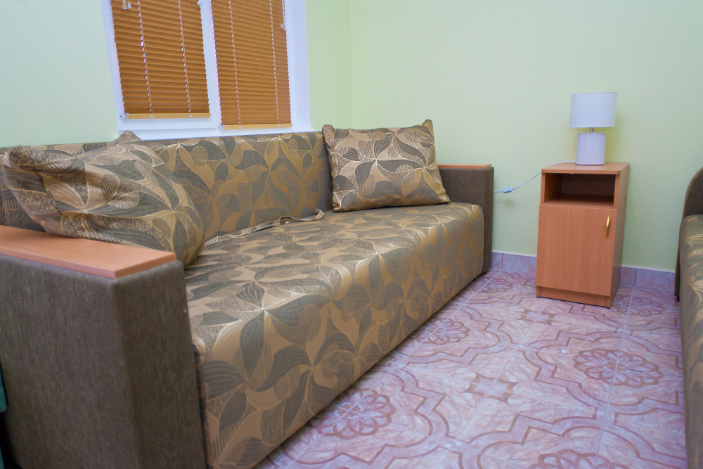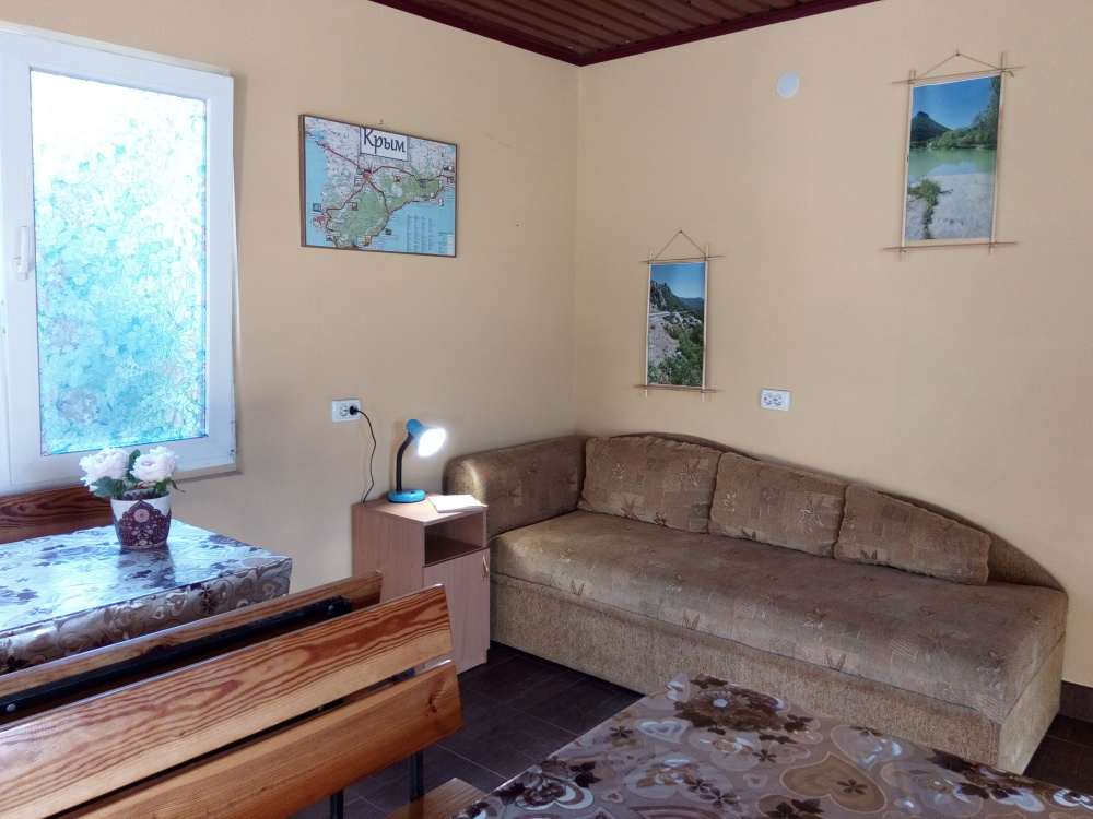 Гостевой дом представляет собой небольшой тенистый уютный дворик с 8 трехместными и четырехместными номерами, в каждом номере: душ, туалет, холодильник, кондиционер, диван-кровать из расчета 4 спальных места, телевизор с жк-экраном, кабельное телевидение, горячая и холодная вода круглосуточно.