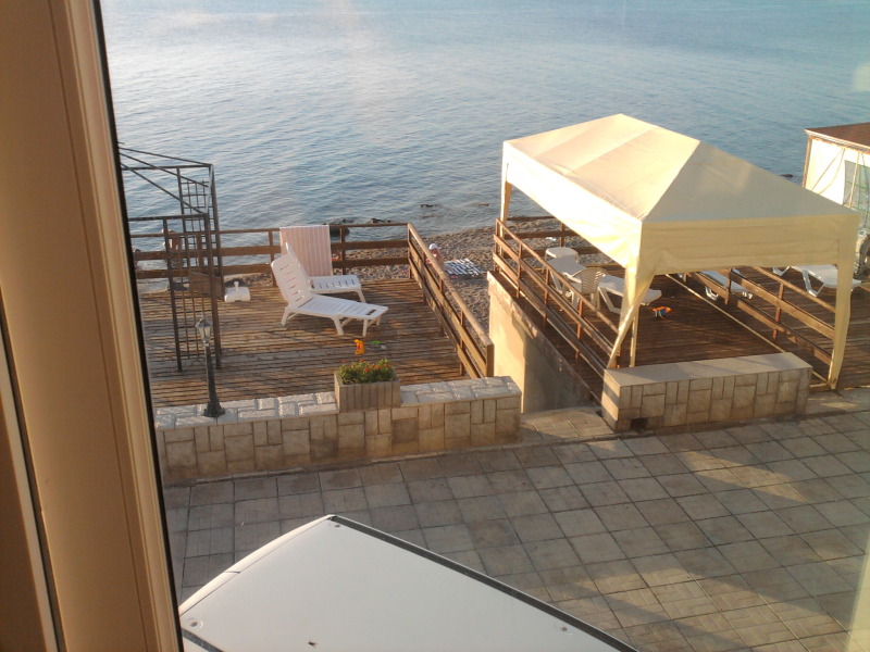 Дверь открыл и ты на своем, в основном, песчано-галечном или песчаном пляже - шезлонги прилагаются бесплатно. Вход в море плавный, вода быстро прогревается и, бывает, уже в мае, когда погода балует ранней весной, происходит открытие плавательного сезона.