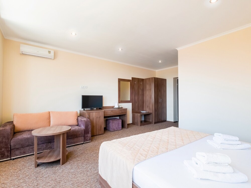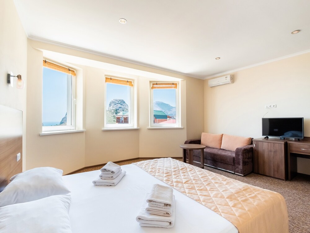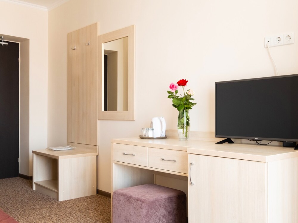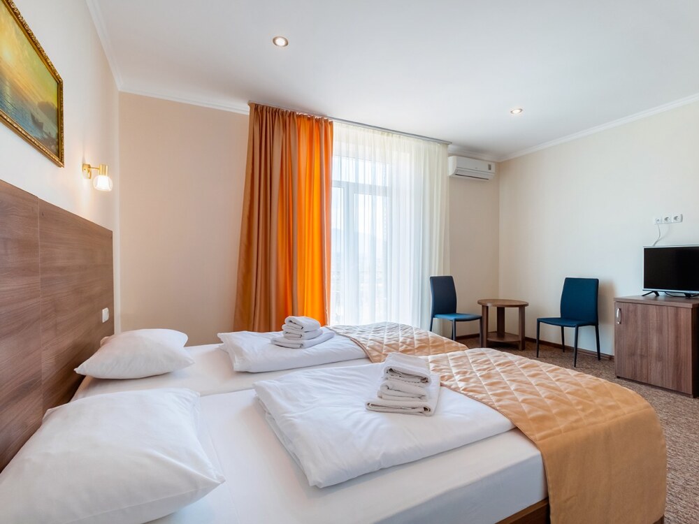 В каждом номере: кондиционер, LЕD-телевизор, кабельное телевидение, wi-fi, санузел с ванной, горячая и холодная вода круглосуточно, холодильник, чайник. Номера чистые, просторные, уютные, уборка производится ежедневно.