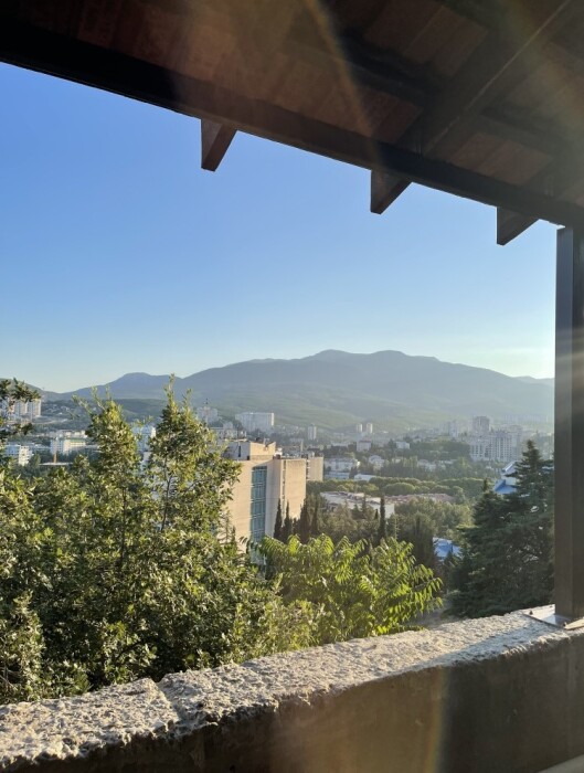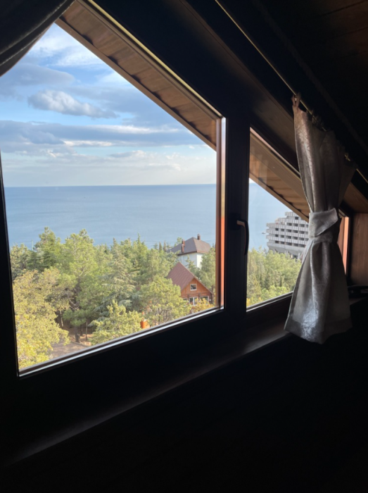 Номер на 2 этаже, со своей кухней, балконом, прекрасным видом на море, горы и город.