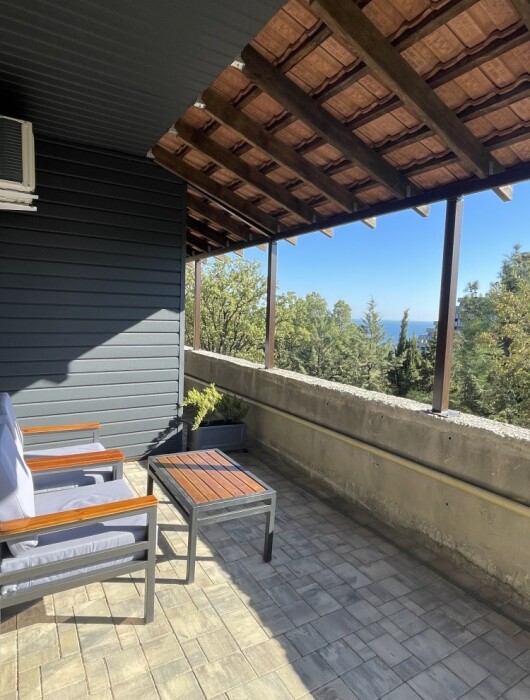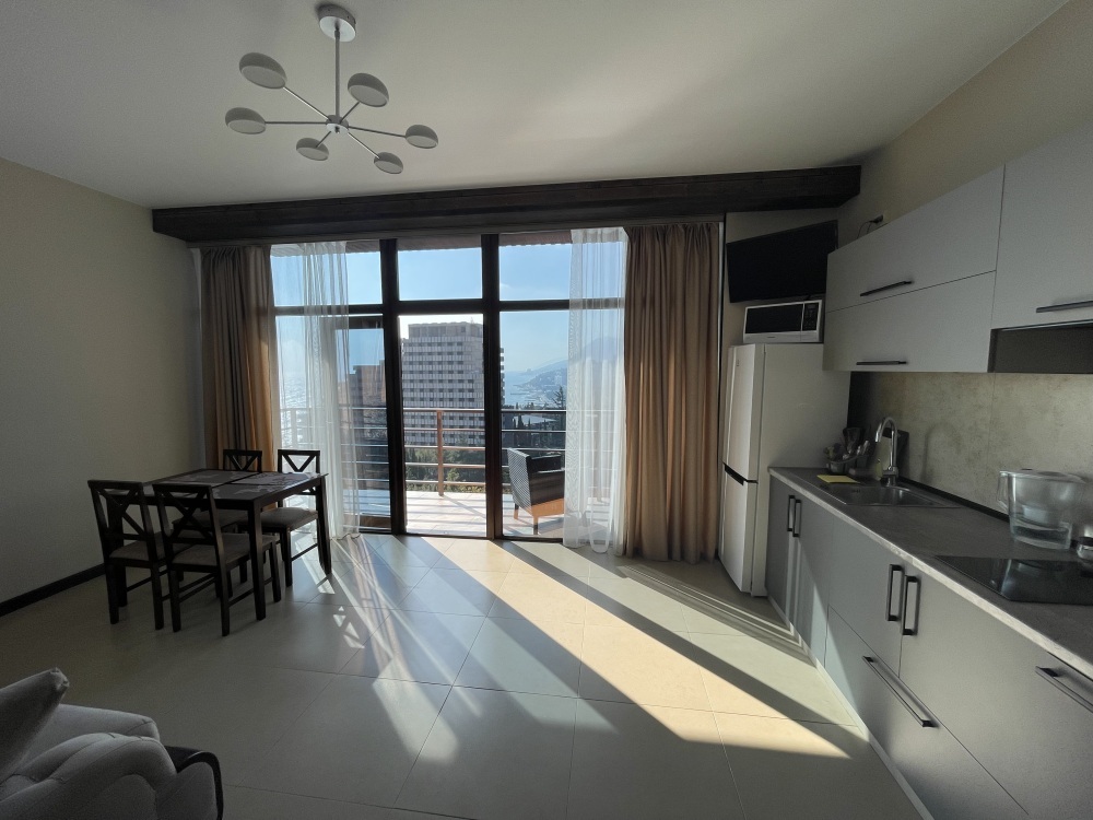 Новый, современный номер с кухней на 2 этаже, с балконом, видом на горы, море, город.