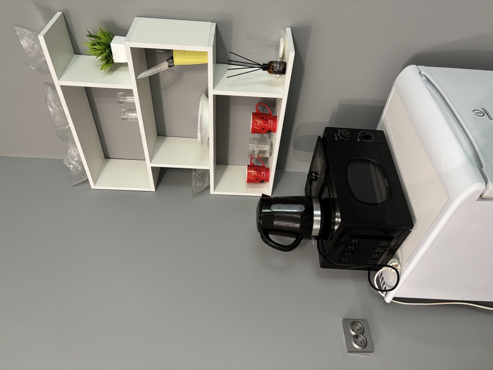 Общая кухня на два этажа со всем необходимым для самостоятельного приготовления пищи: холодильник, газовая плита, эл. чайник, микроволновая печь, посудомоечная машина, необходимая посуда, столы, стулья.