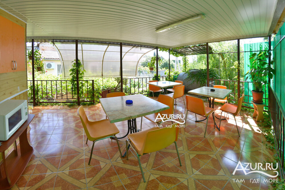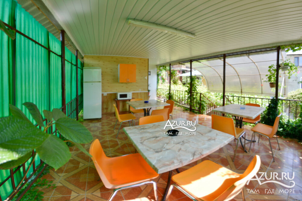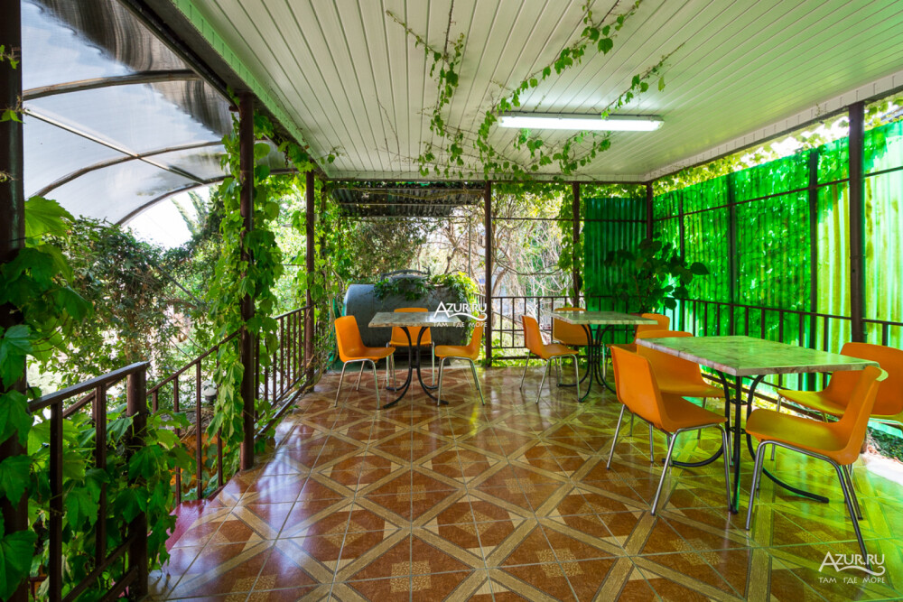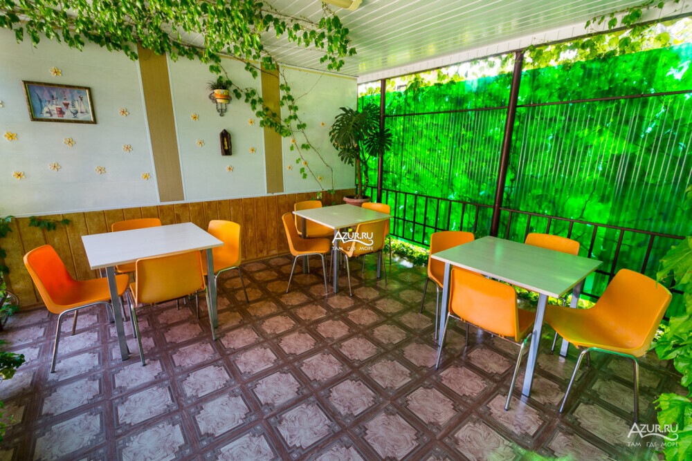 В каждом из номеров гостевого дома свой санузел, кондиционер, холодильник и приличная мебель. Для каждых трёх номеров своя терраса с кухней и столовой с индивидуальным столиком для каждого номера. У «Семейного» номера свои кухня и столовая. На втором этаже номера с небольшими столовыми в каждом номере, на третьем этаже номера поскромнее.