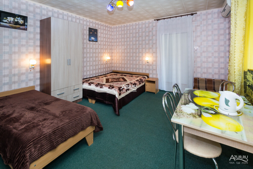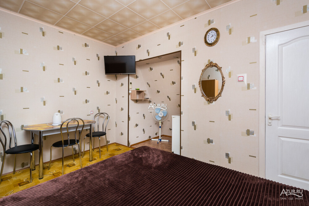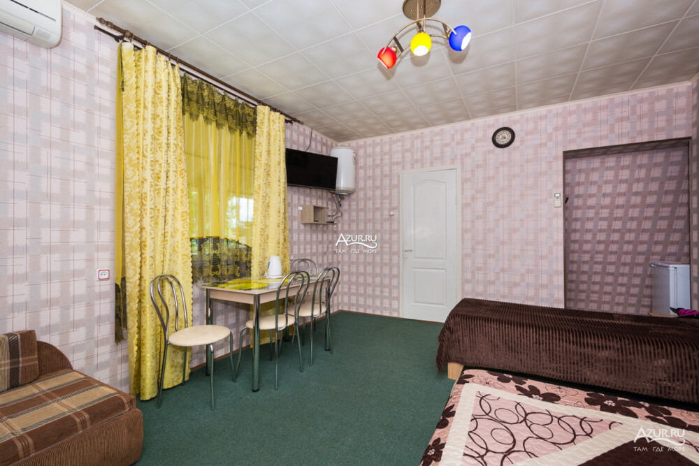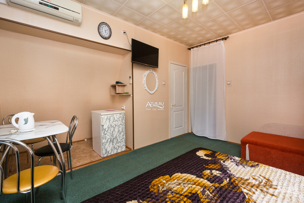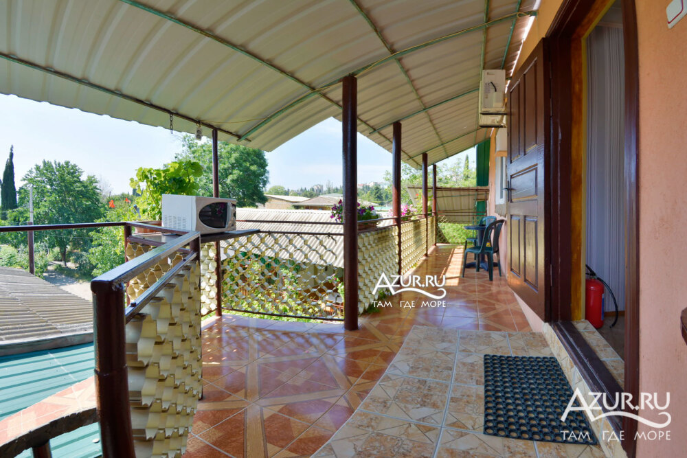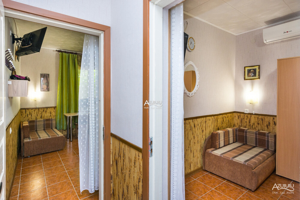 Номер на первом этаже, имеет отдельный вход, собственный небольшой дворик, что очень удобно для отдыха с детьми.