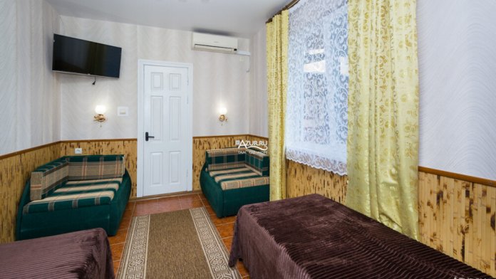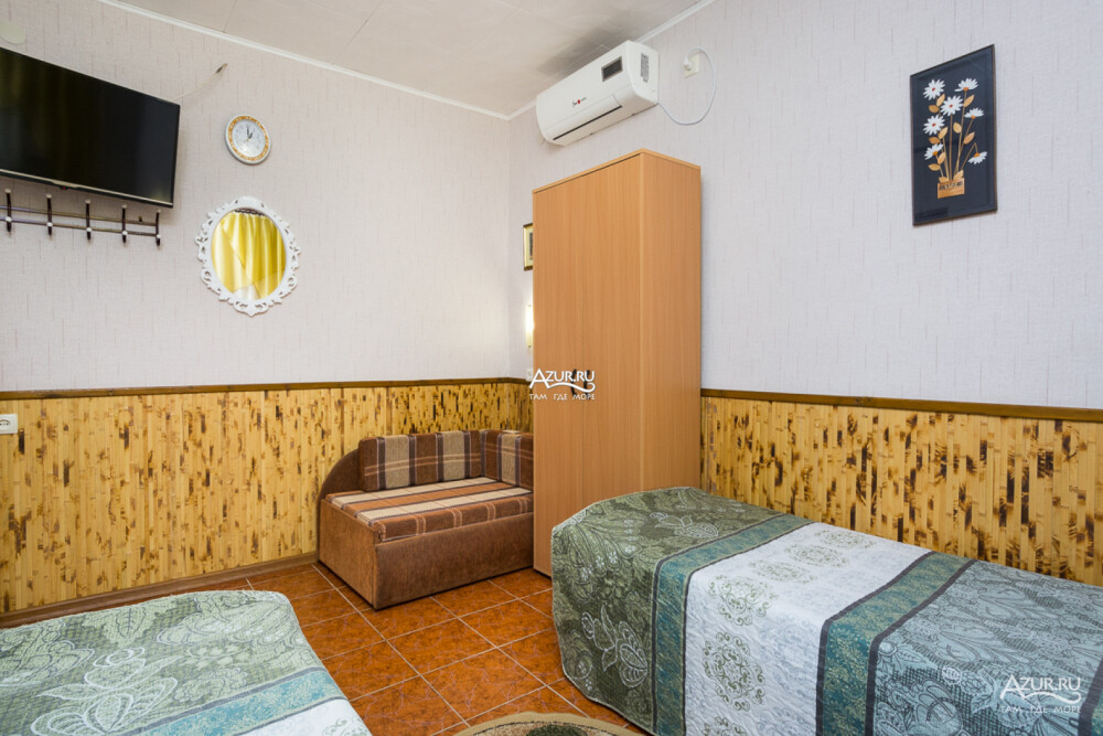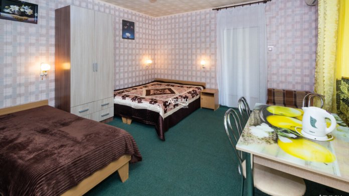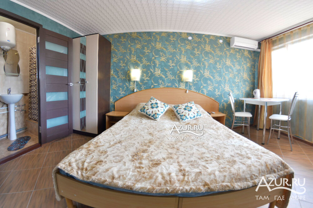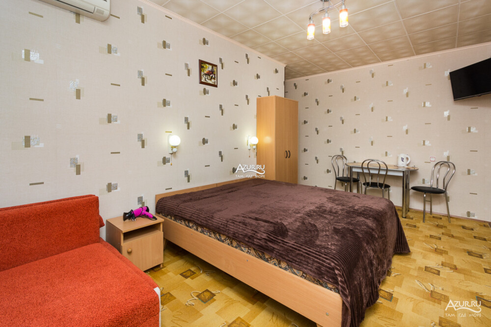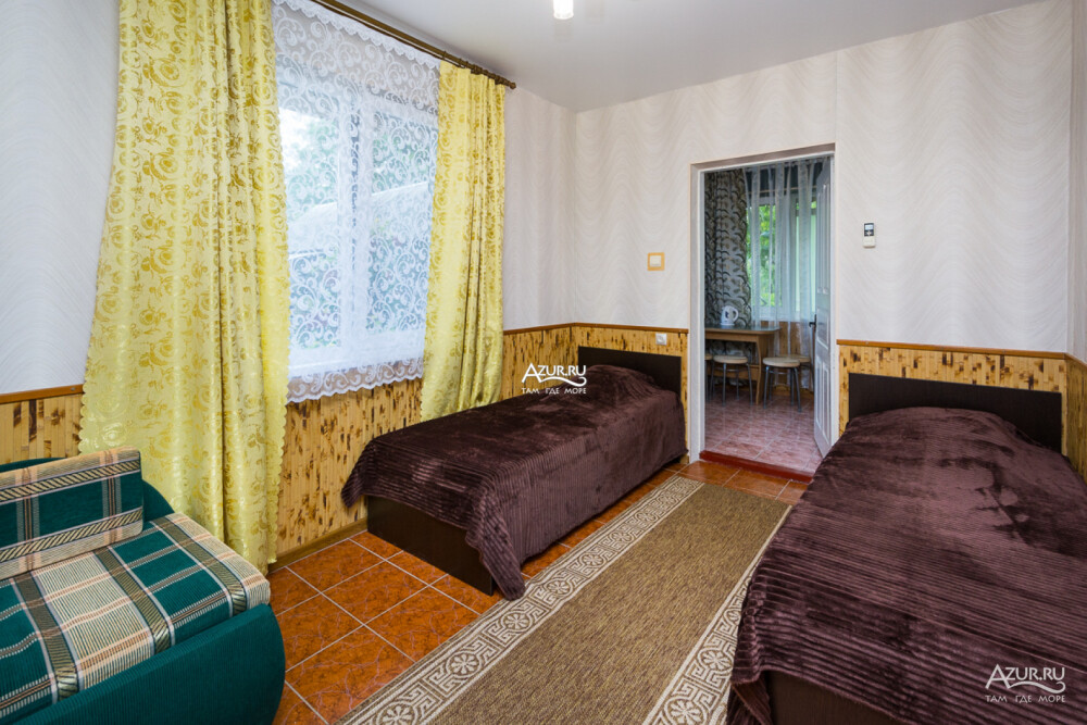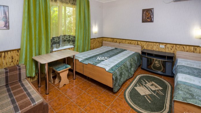 Номер на первом этаже, имеет отдельный вход, собственный небольшой дворик, что очень удобно для отдыха с детьми.