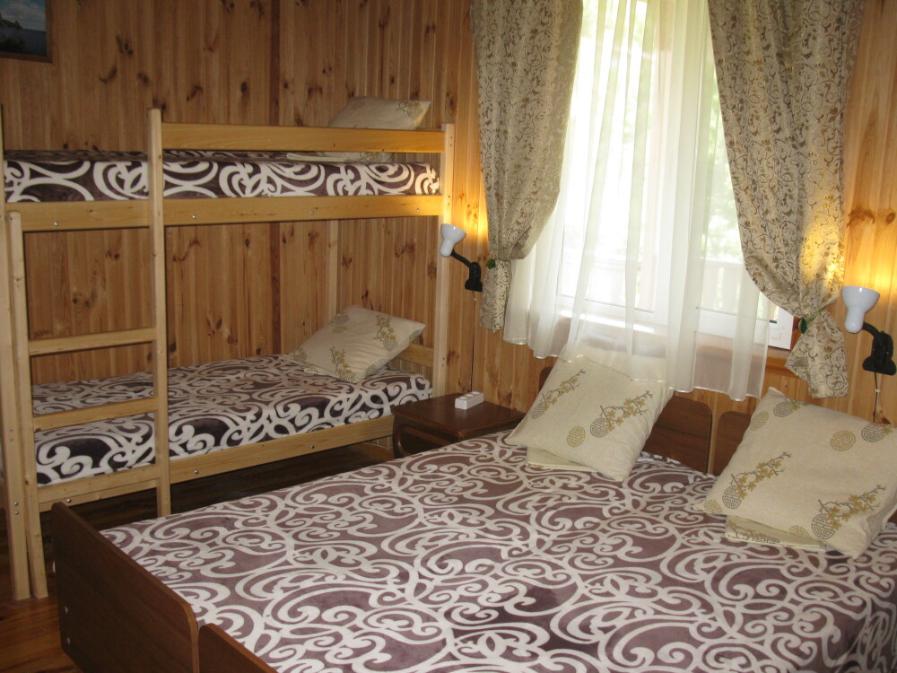 Отдыхающим предлагается два 3-местных и два 4-местных номера со всеми удобствами. В каждом номере кухня с полным набором посуды для самостоятельного приготовления пищи, газовая и микроволновая печи, электрочайник, стиральная машина, большой холодильник, комната гигиены, комната отдыха, в которой: три кровати, кондиционер, телевизор, сейф, вещевой шкаф, прикроватные тумбочки, утюг и гладильная доска. Во всех номерах (2 и 3 этаж) свой балкон. На 1-м этаже проживают хозяева.