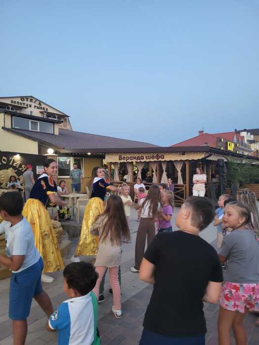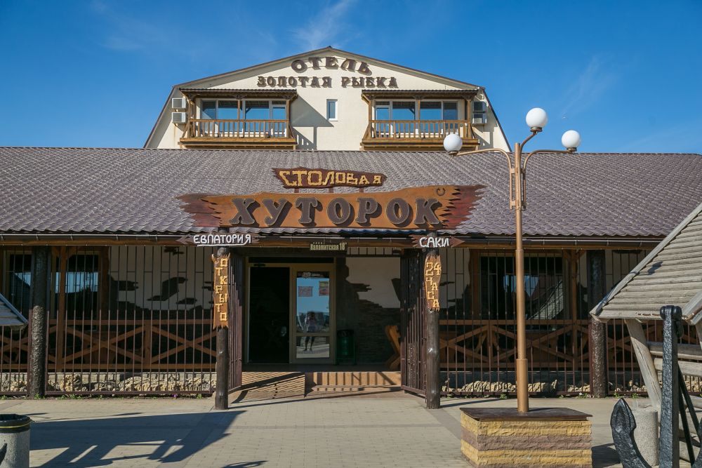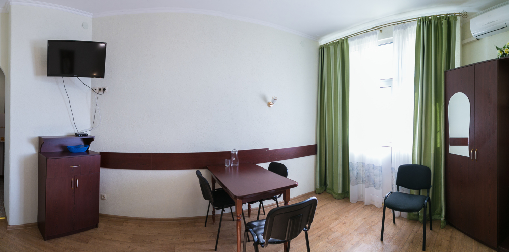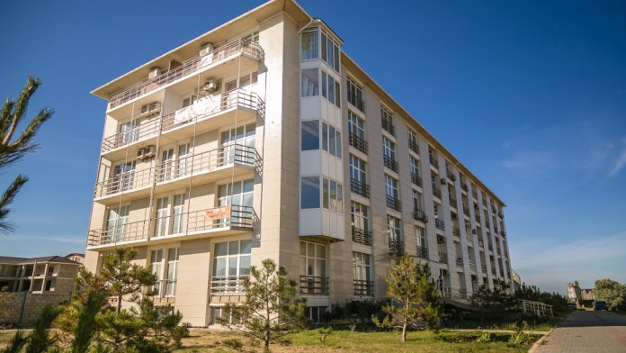 Номера находится в пятиэтажном корпусе, расположенном в районе евпаторийского аквапарка «Банановая Республика. (до аквапарка можно дойти пешком за 10-15 минут) до Евпатории - 12 км по трассе Симферополь - Евпатория.