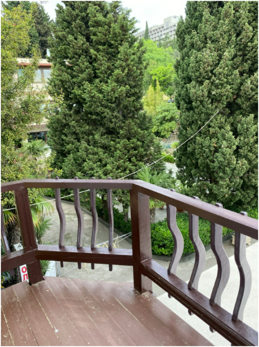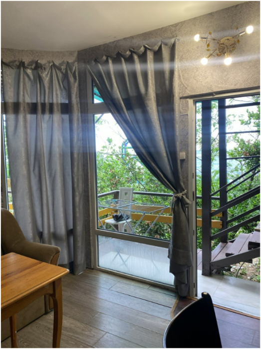 Гостевой дом утопает в экзотической зелени, а свежий чистый морской воздух оказывает на организм мощный оздоравливающий эффект, очищает лёгкие и улучшает сердечно-сосудистую систему. Дополнительные удобство и безопасный простор для отдыхающих с детьми создаёт отсутствие автомобильного движения и громкого шума.