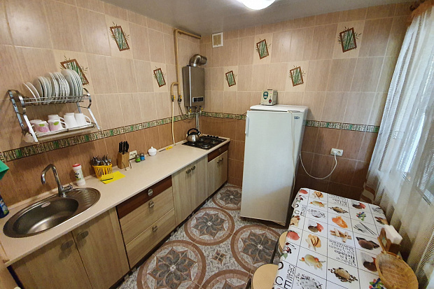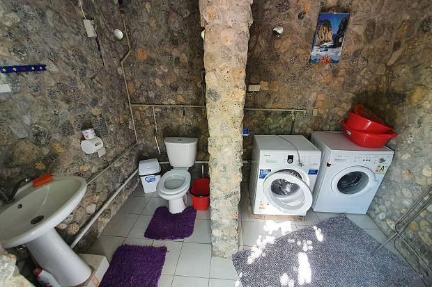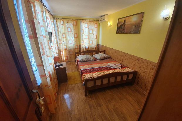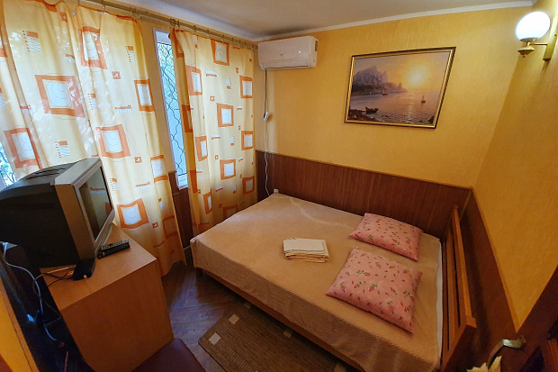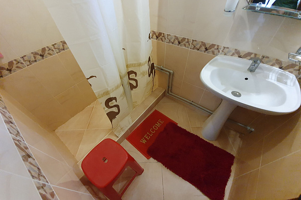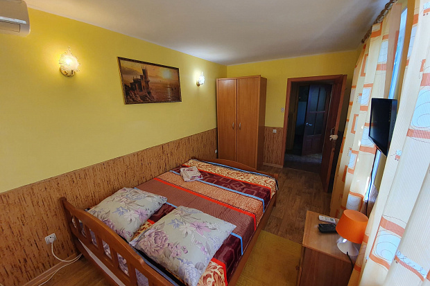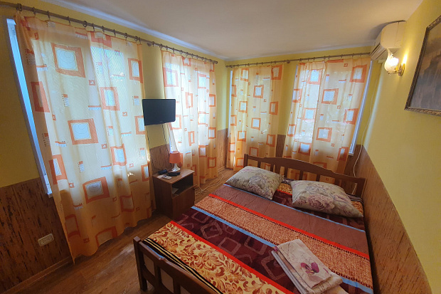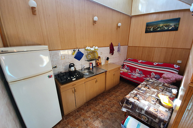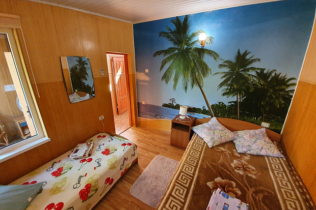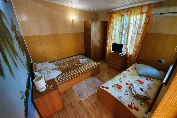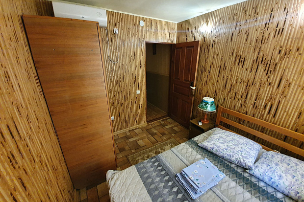 Четырехкомнатный дом, который состоит из трёхкомнатного и однокомнатного домов на одной территории. Все комнаты изолированные. В каждой комнате есть кондиционер. Имеется 2 кухни и 2 санузла. Размещается до 11 человек. Во дворе есть летний санузел.
