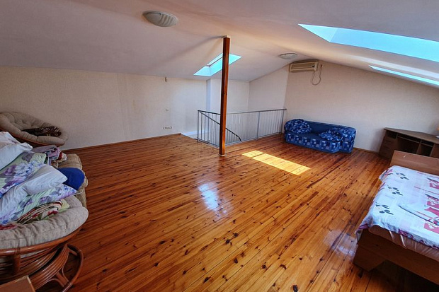 Трехуровневый дом. На первом - огромная гостиная, кухня и санузел. На втором - 3 спальни и санузел. На третьем - мансарда. В доме 5 кондиционеров и 2 санузла. Свой двор. Через дорогу - множество различных песчаных пляжей.