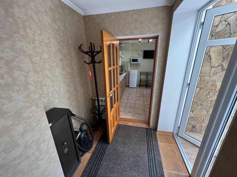Дом находится максимально близко к «спрятанным» санаторским пляжам, путь к которым находят далеко не все. Именно поэтому на данных пляжах немноголюдно даже в разгар сезона. Как добраться и как попасть на эти пляжи, мы рассказываем своим клиентам. Есть дома, от которых по расстоянию примерно столько же, как от этого, но ближе - нет. Дорога у Вас займет около 4 минут через парк, в котором находится дельфинарий и «Затерянный мир» с динозаврами в натуральную величину. Если Вам захочется выбрать другой пляж, то неподалеку (5 минуты прогулочным шагом) находится другие центральные пляжи. В радиусе 100-150 метров Вы найдете пиццерию и минимум 3 продовольственных магазина. Добавив к указанному радиусу еще 200-300 метров, Вы увидите столовые, детскую «Поляну сказок» с игровыми площадками и сказочными персонажами, аквапарк. Также, поблизости найдутся рестораны и другие увеселительные заведения для взрослых и детей. Найти все это можно на набережной Горького, которая начнется в 300-400 метрах от дома.