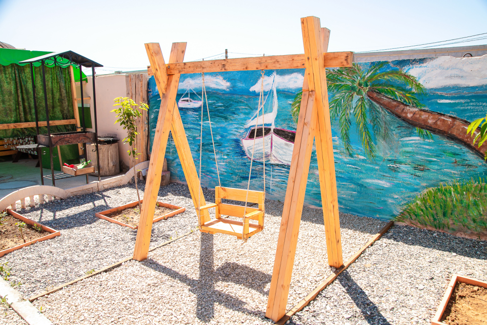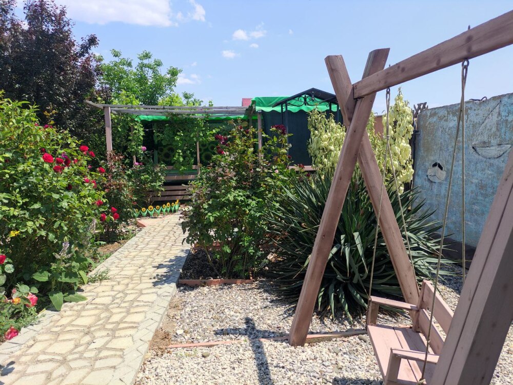 Во На территории летняя кухня с полным набором посуды, беседка с двумя большими столами, детская площадка, фонтан, песочница.