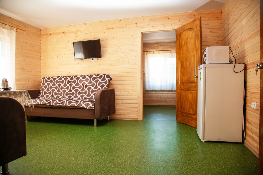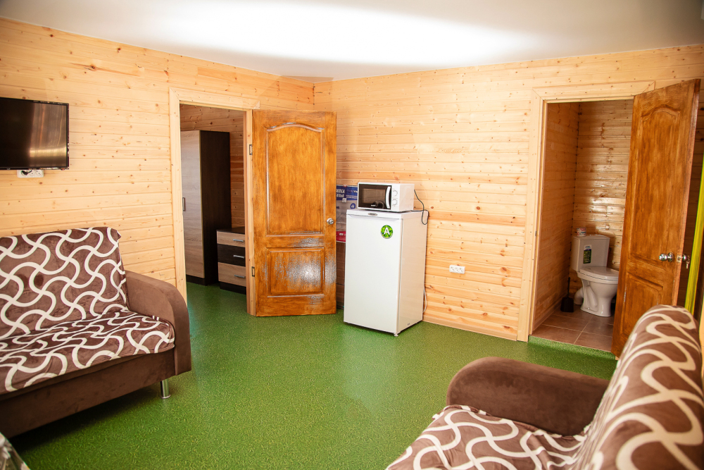 Всего у нас два таких двухкомнатных номера, построенных в 2022 году.Номера находятся на отдельной территории,на которой имеется стиральная машина. кухня с полным набором посуды,мангальная зона и беседка. Номера со всеми удобствами,горячая и холодная вода круглосуточно,имеется вся бытовая техника.мебель, микроволновая печь, кондиционер, водонагреватель, фен, телевизор, спутниковое, цифровое тв, интернет, санузел совмещены.