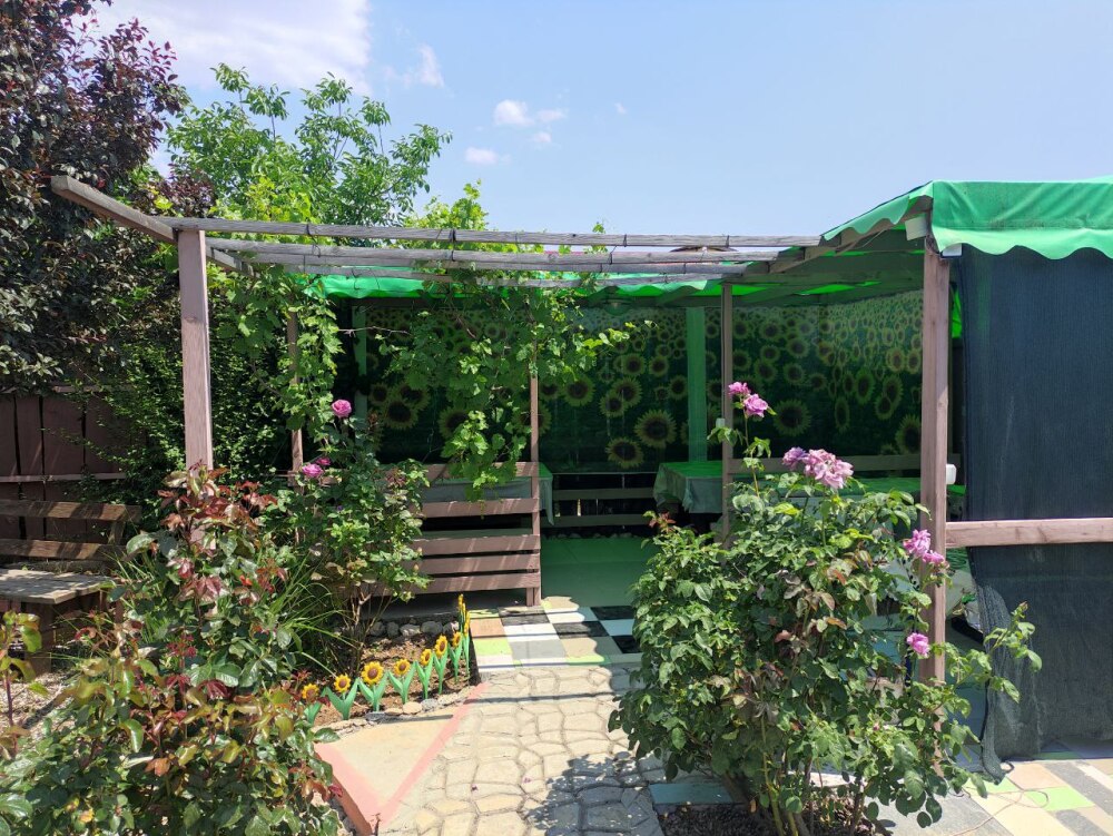 Номер с большим балконом . На первом этаже стиральная машина, кухня и беседка для отдыха. В номере вся необходимая мебель,в том числе : две односпальных кровати в одной комнате,а во второй два двухспальных раскладных дивана, кондиционер, водонагреватель, фен, телевизор, спутниковое, цифровое тв, интернет, санузел совмещенный.Холодная и горячая вода -круглосуточно.
